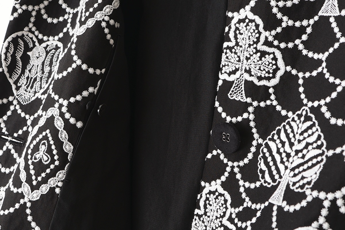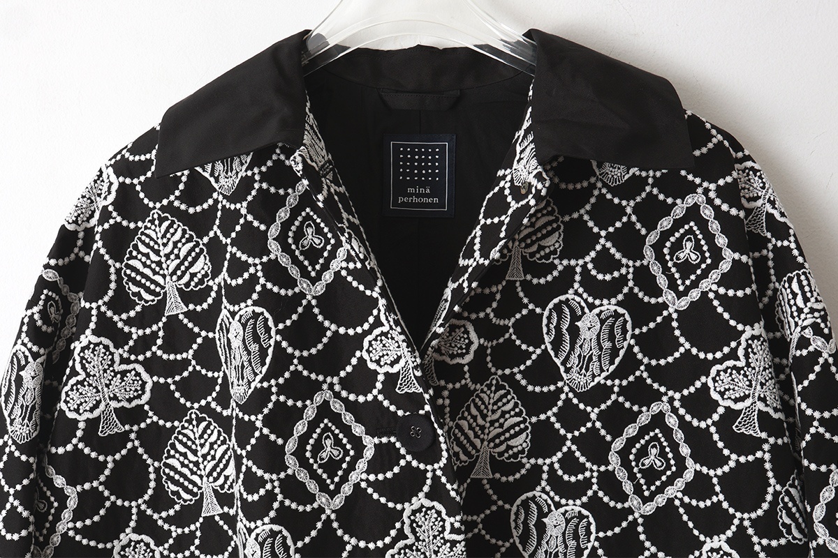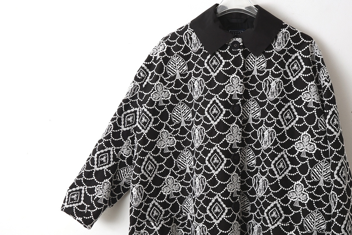 | 商品説明 | トランプのモチーフに森の情景を映した“forest card(フォレスト カード)”。アイコニックなフォルムの中に、別世界が広がっているような、幻想的な雰囲気が漂うデザインです。 経糸にフィラメントシルク、緯糸コットン糸を使用した生地に刺繍を浮かべたコート。ナチュラルでありながら上品な光沢感を持つダブル平織組織の生地は、天然素材ならではの風合いを感じさせつつ、フィラメントシルクの華やかな光沢が優しく広がります。上質な生地の表情が活きる、すっきりとしたデザインです。 |