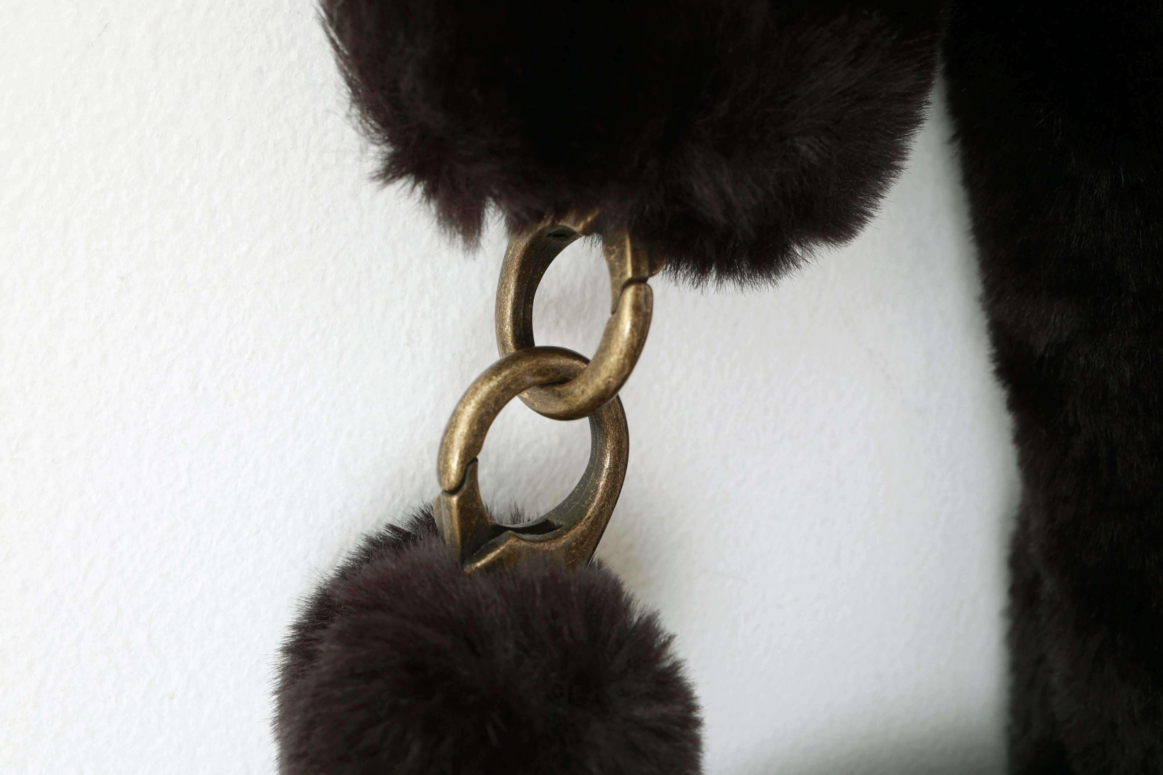 | 商品説明 | アクリル100%のエコファーが使用されたバッグです。チョコレートトリュフのような丸みがかわいらしい形です。持ち手の金具は、取り外し可能となっております。別売りの「ソフトショルダーベルト」を接続するとショルダーバッグにもなります。 |
