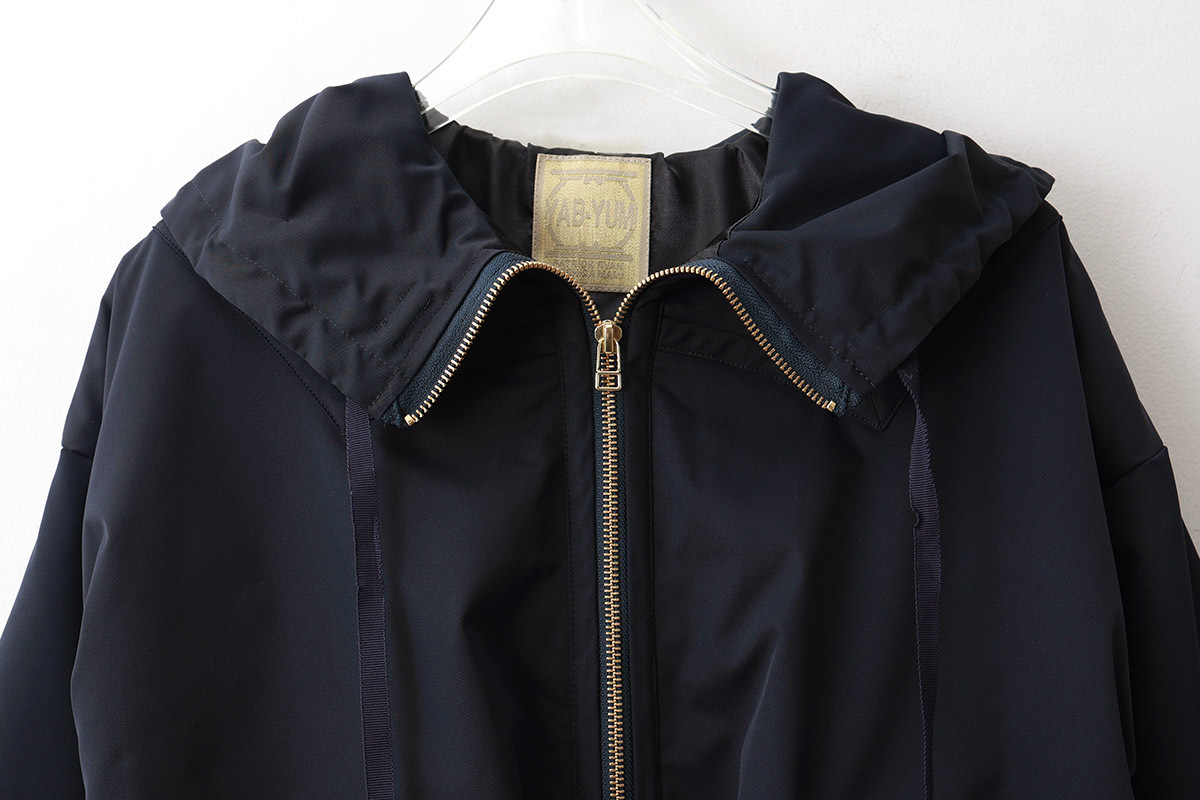 ふんわりとした丸みのあるシルエットのブルゾンです。フード留めボタンが付いていてフードが立ち上がるので風よけに便利です。中綿で軽くてあたたかな着心地。