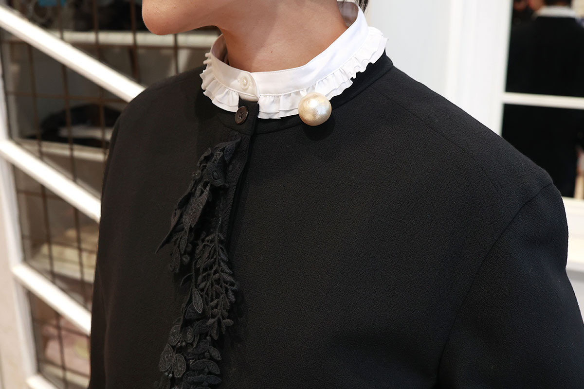 | 商品説明 | 森に息づく草木や風など、森の中のモチーフをパーツにした“forest parade(フォレスト パレード)”のレースがフロントにあしらわれたブルゾン。強撚ウール糸で織り上げられたシボ感のある生地は、粒子の粗い砂糖のような風合いです。どこか懐かしく、ぬくもりを感じさせる表情が魅力。ほどよく身体に沿うクラシカルなシルエットに仕立てられています。 |