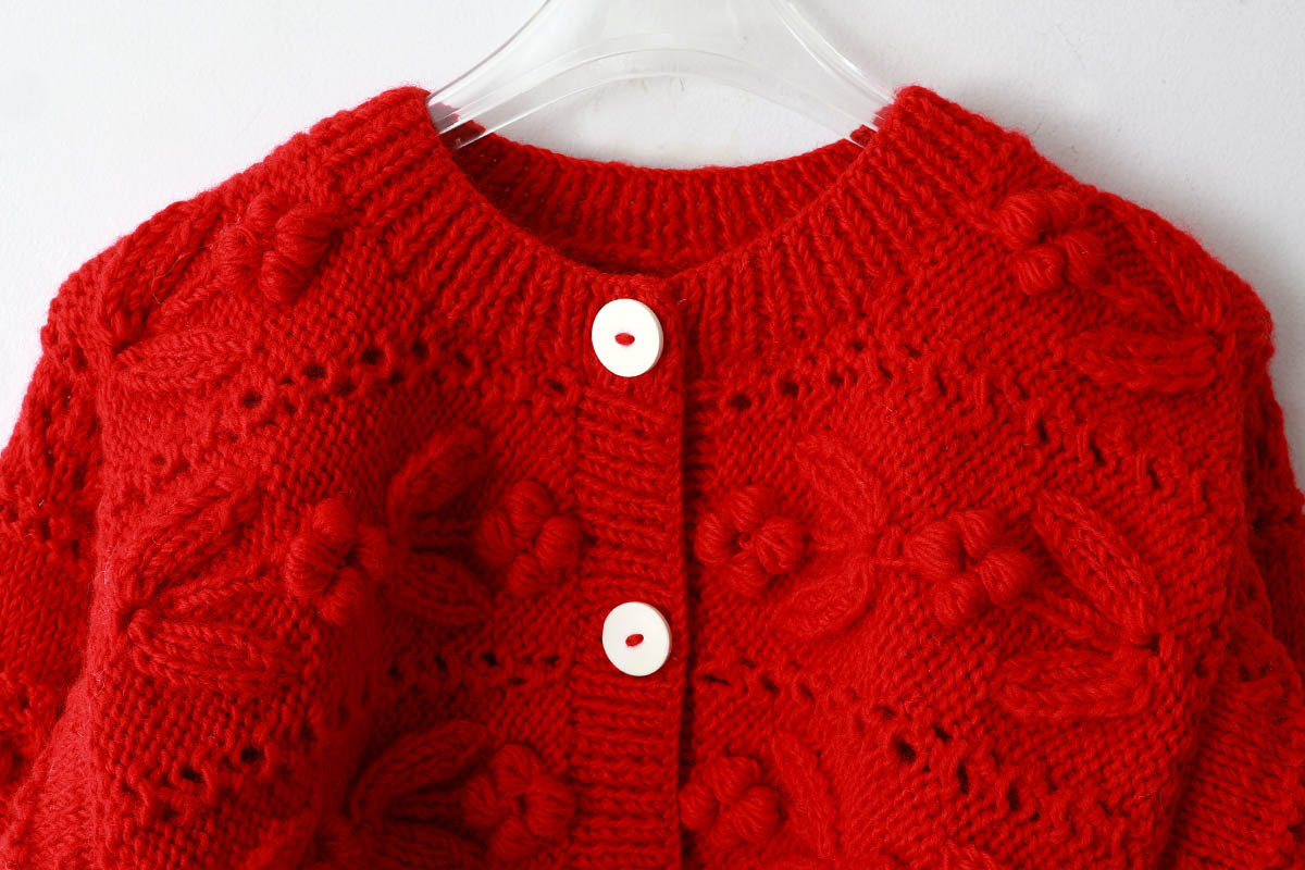 ネパールギルボックス もよう編みショートカーディガン (RD) [CHILD WOMAN]