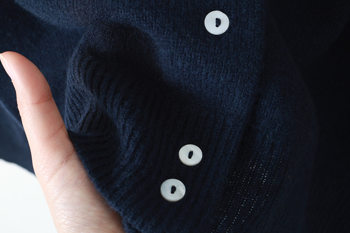 スタンダードな形なので、肌寒い時期の羽織りとしてはもちろん、ブラウスやシャツと合わせてメイントップスとして長いシーズンお楽しみ頂けます。