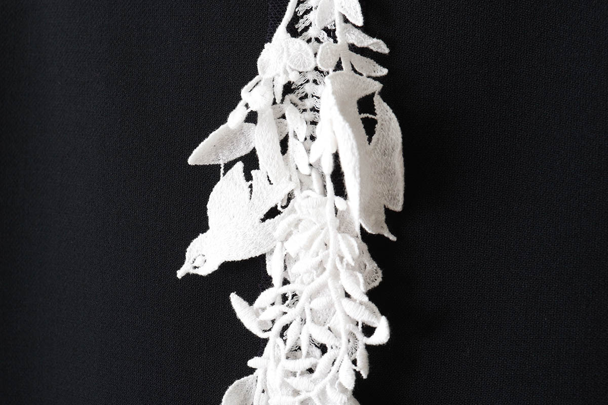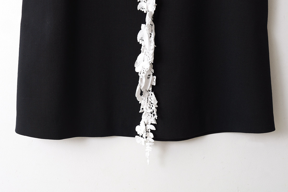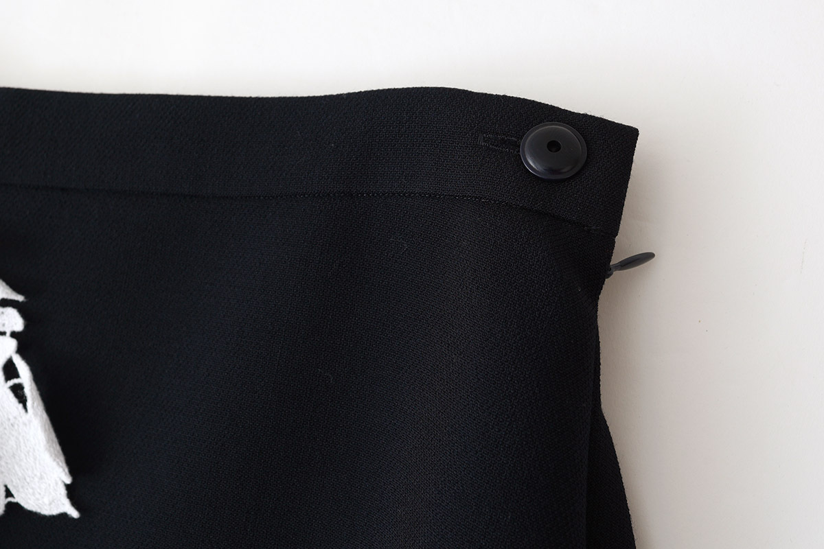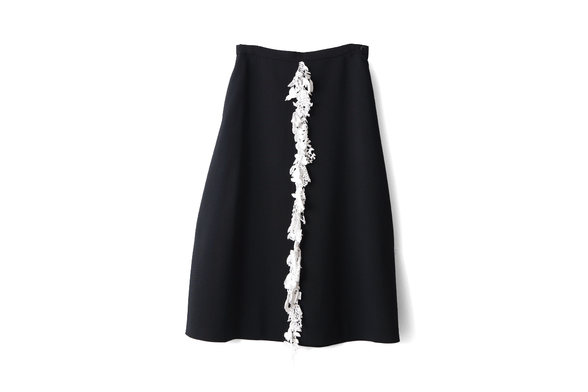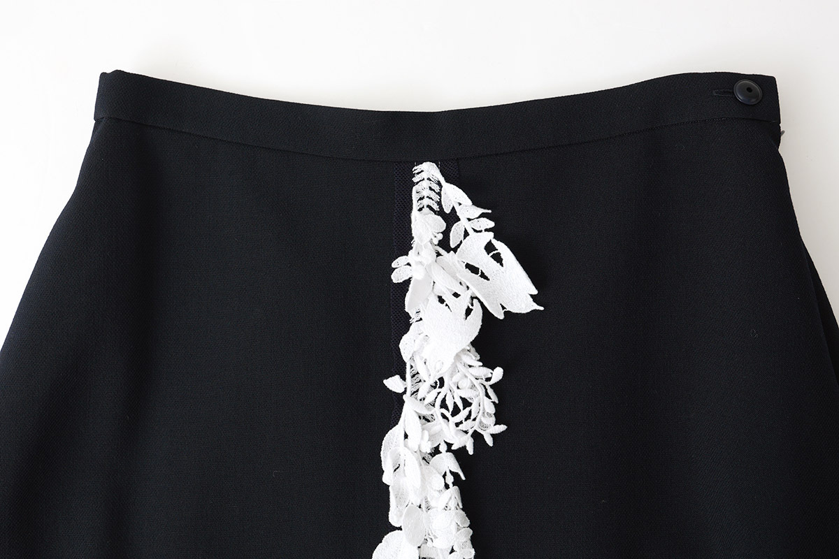 | 商品説明 | ウール100%のスカートです。 フロントには“forest parade(フォレスト パレード)”のレースがデザインされ華やかな雰囲気。 dark navvyの生地に白いforest paradeのレースが映える素敵なデザインです。 |