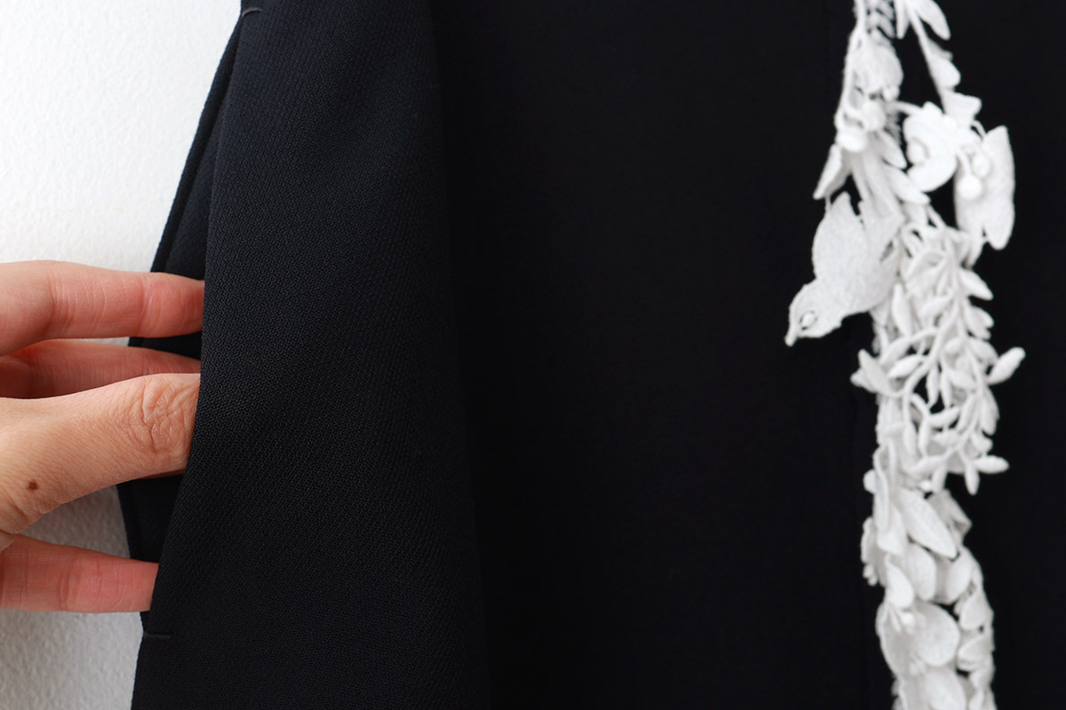 | 素材 | 毛100% レース部分/上糸 綿100% 下糸 ポリエステル100% 裏生地/キュプラ100% |