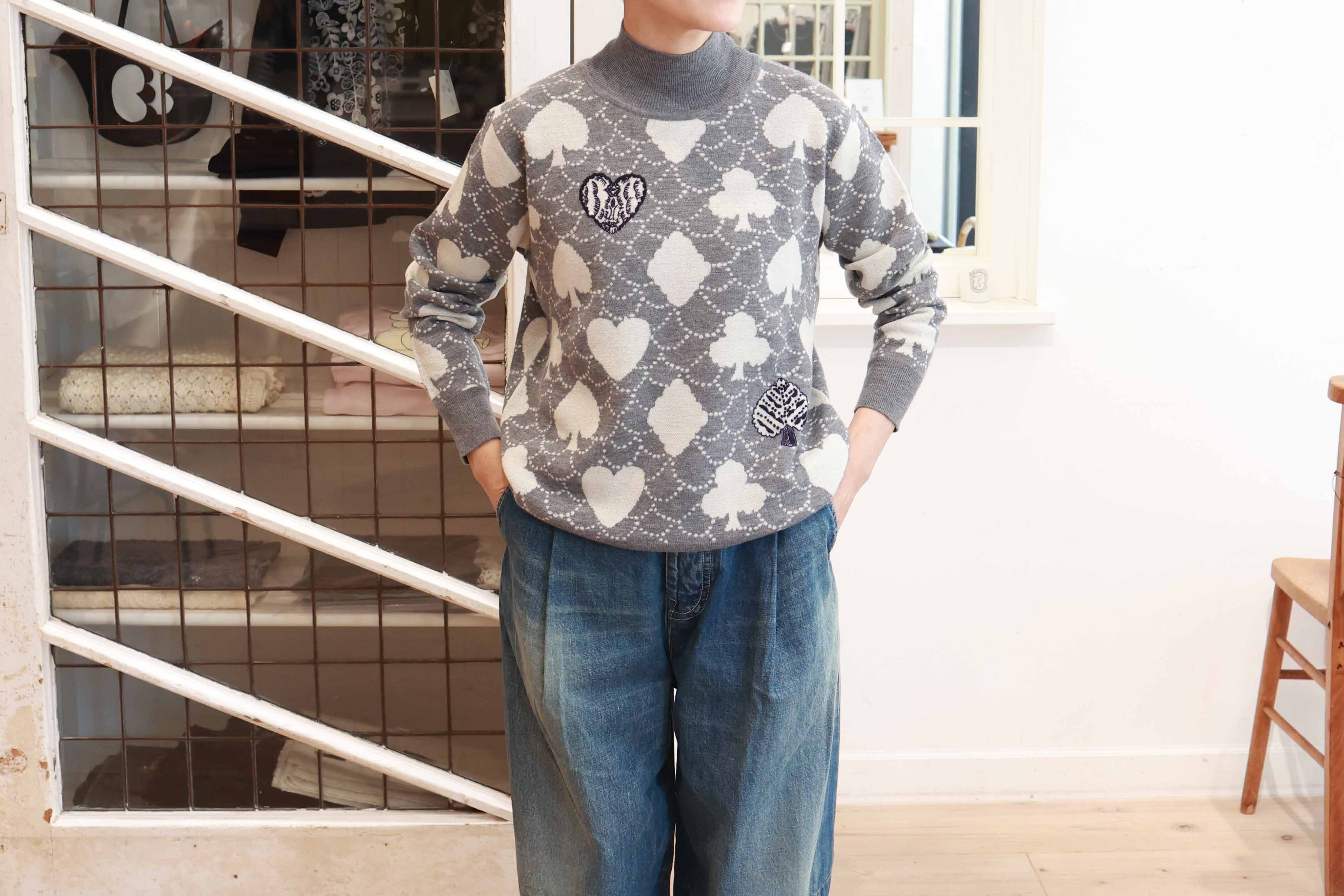 | このニットは、手刺繍を施しています。そのため柄の出方が一点ごとに異なります。そのものだけが持つ表情をお楽しみいただけましたら幸いです。 |