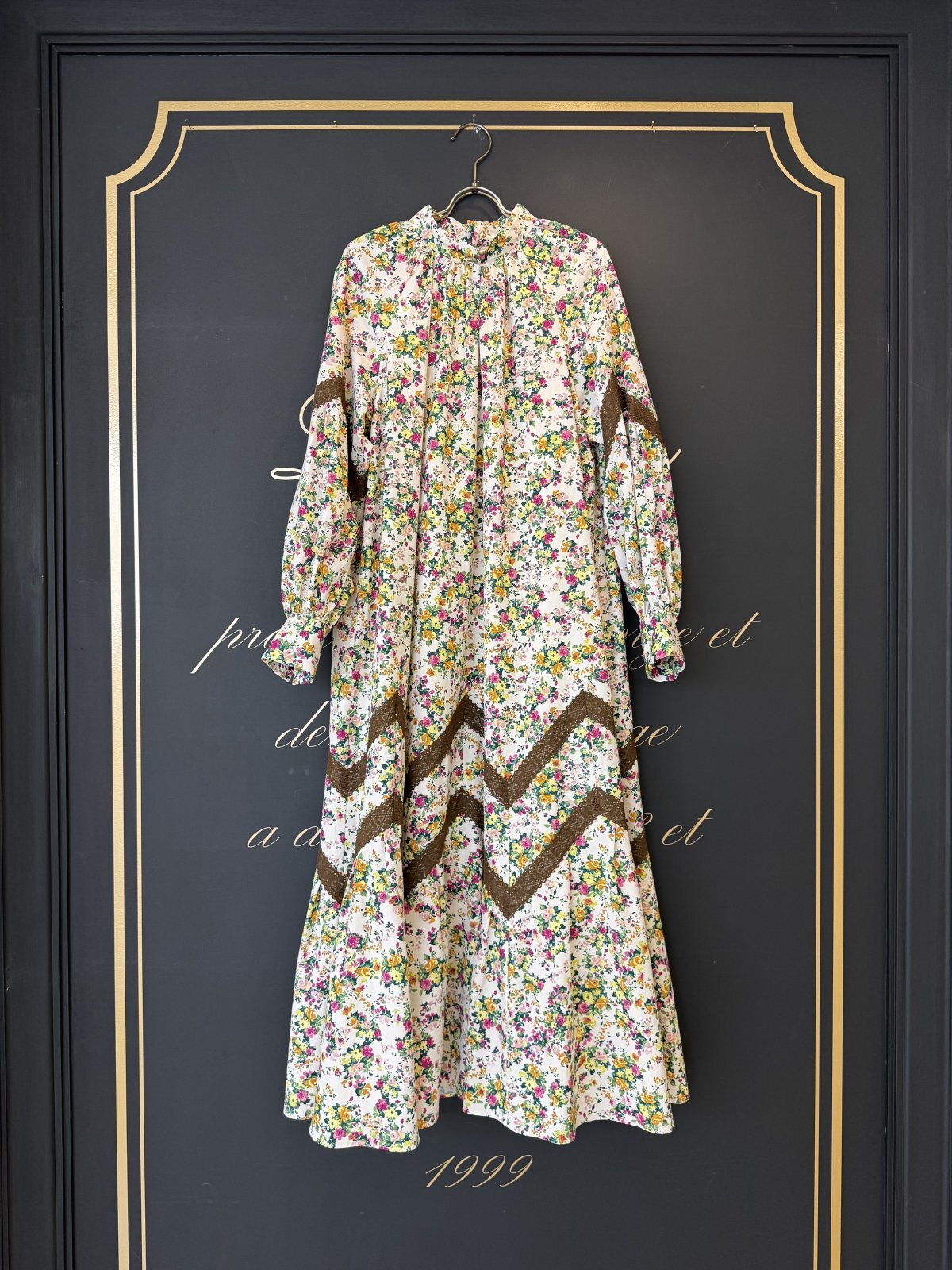 leur logetteアーカーイブのフラワープリント生地でショップ別注のギャザーワンピースをお作り頂きました。袖と裾に添えられたレースがが大人のかわいさを演出します。シンプルに一枚で着るだけで、華やかな雰囲気になります。着心地も楽ちんで軽やか。オールシーズンお召し頂けます。