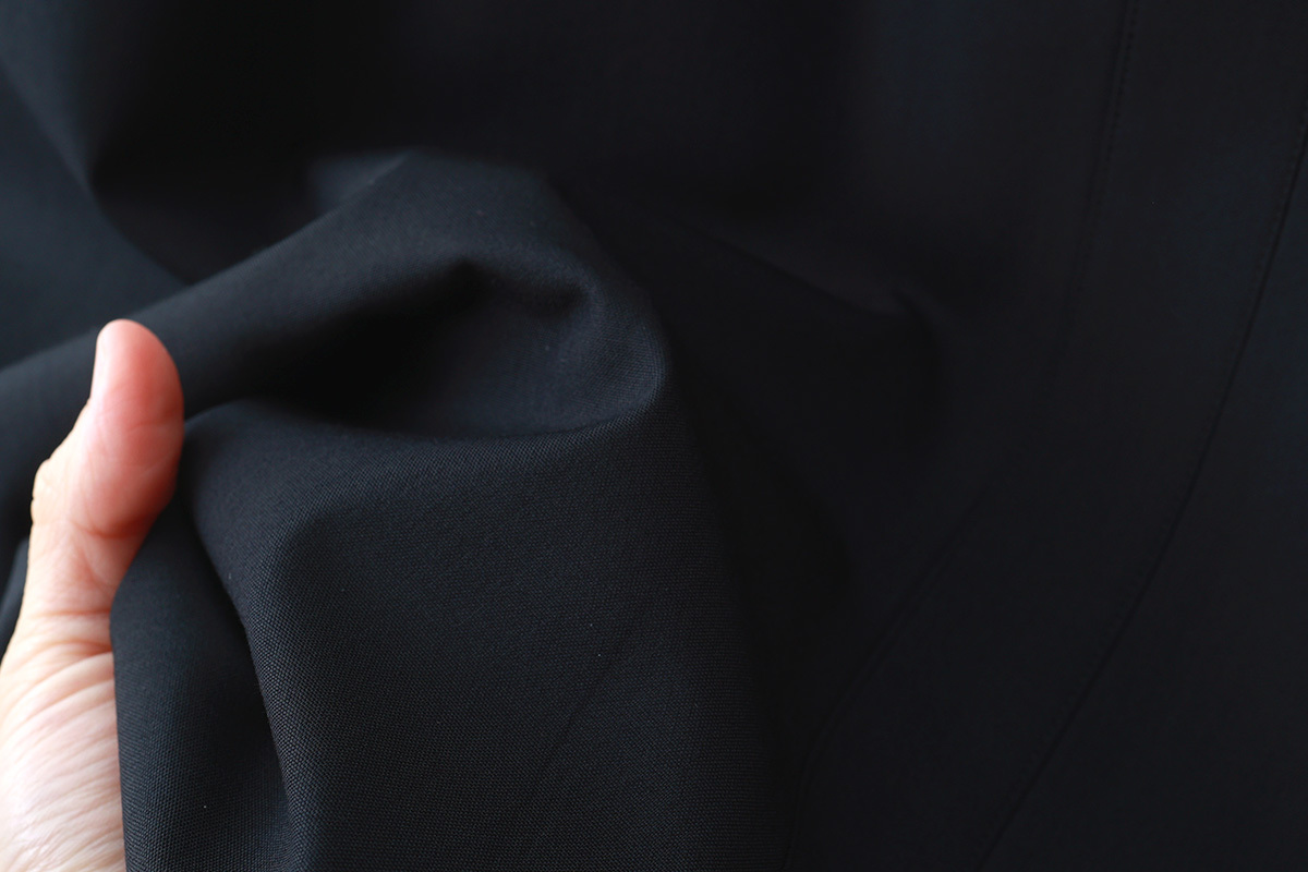 | 経糸にウール、緯糸にスパンシルクを使って高密度に織り上げられた“sol(ソル)”。スパンシルクは、通常のシルクに比べて伸縮性や柔軟性があり、シルクの光沢と、心地よい着心地が魅力です。