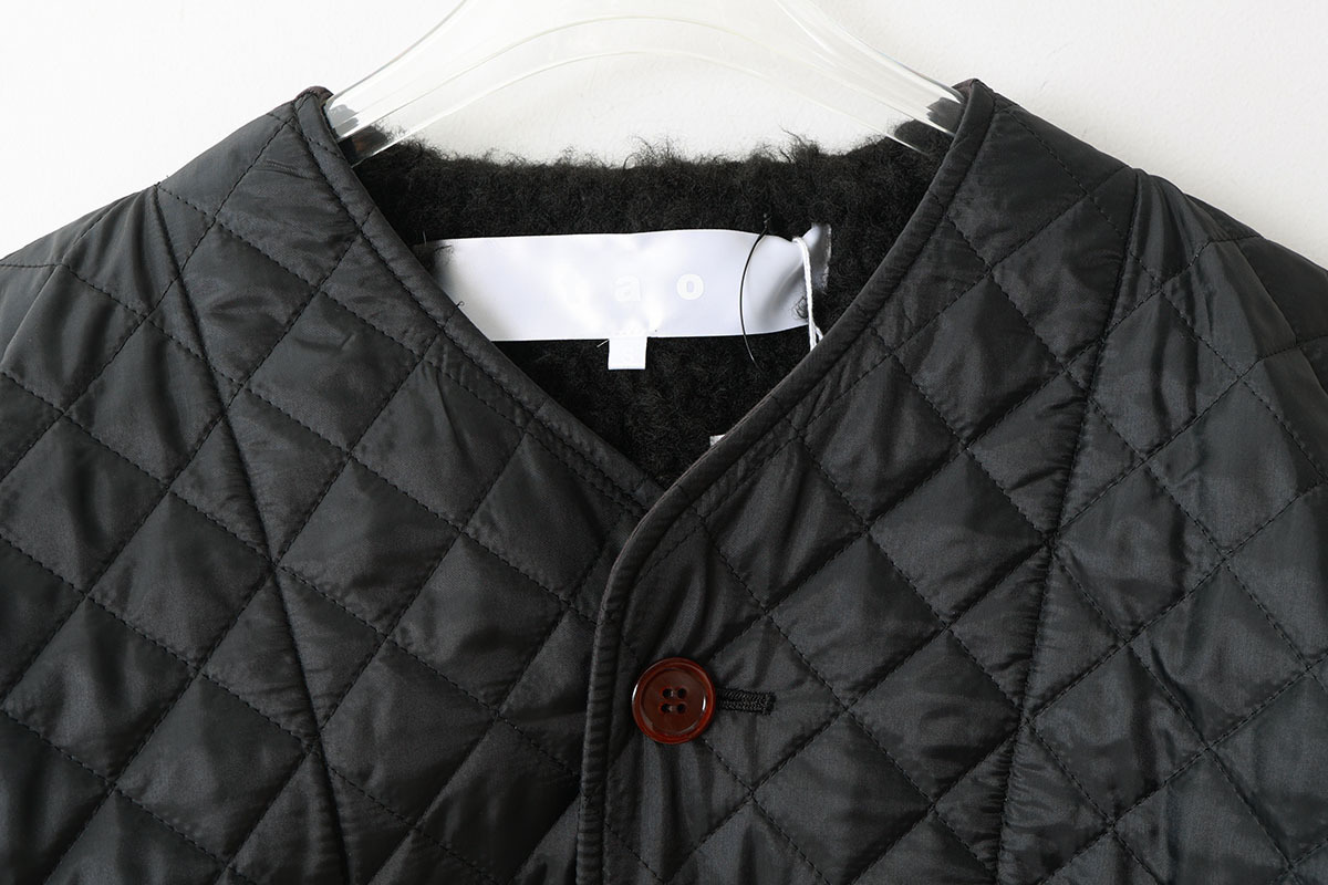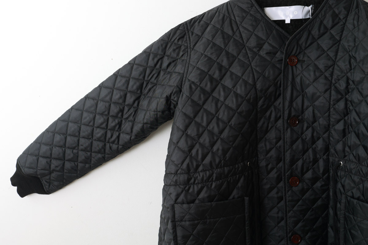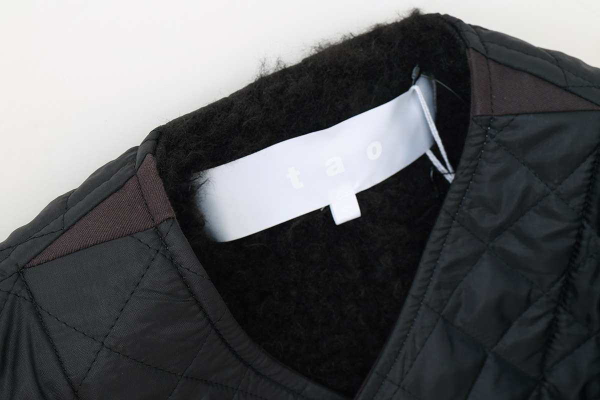 SALE30%OFF エステルタフタキルティングノーカラーコート(BK) [tao (tricot COMME des GARCONS)]