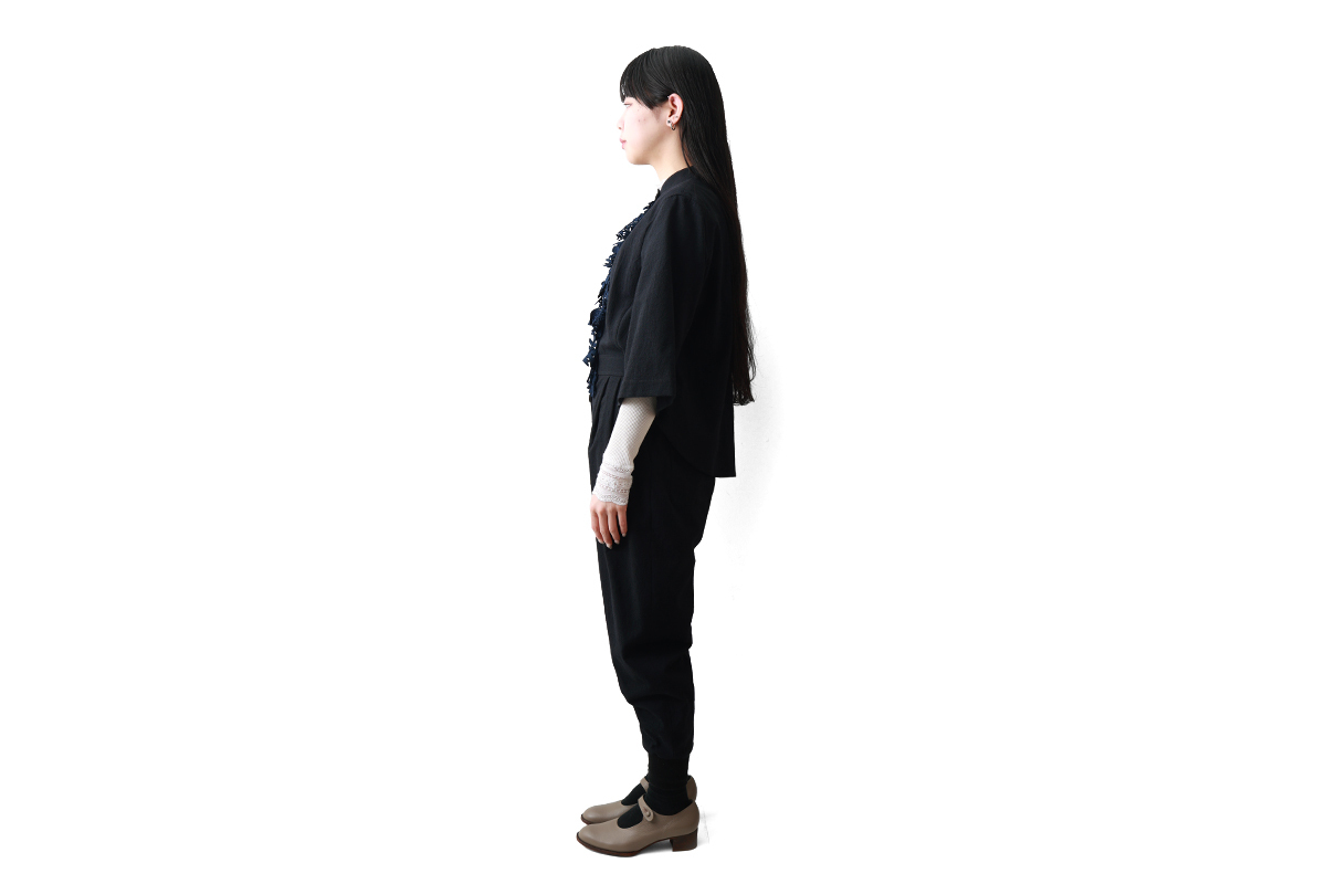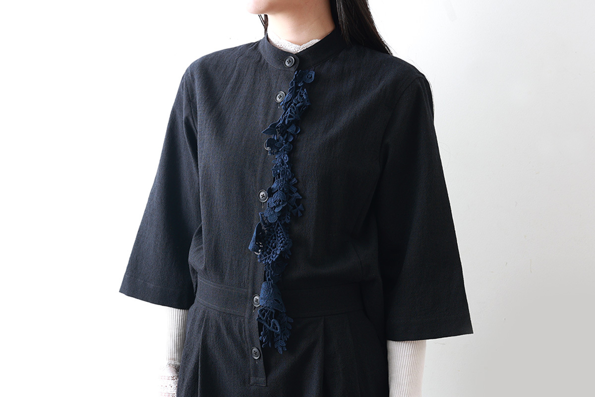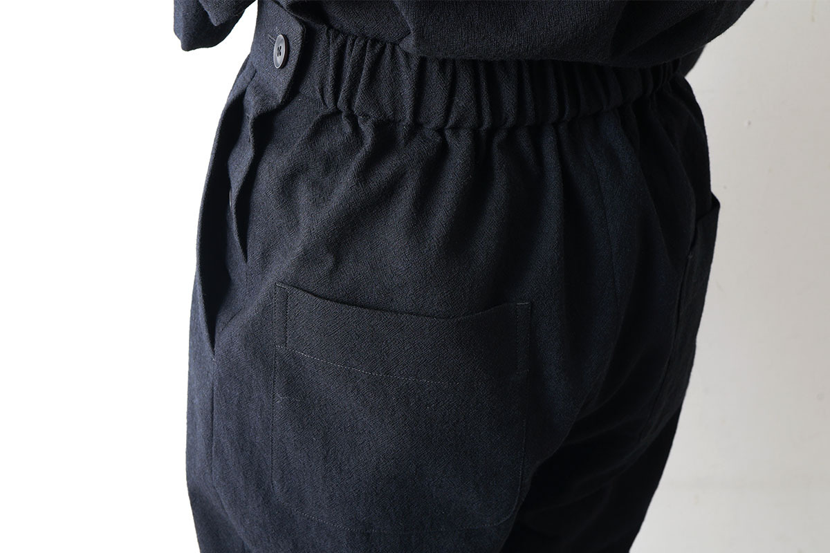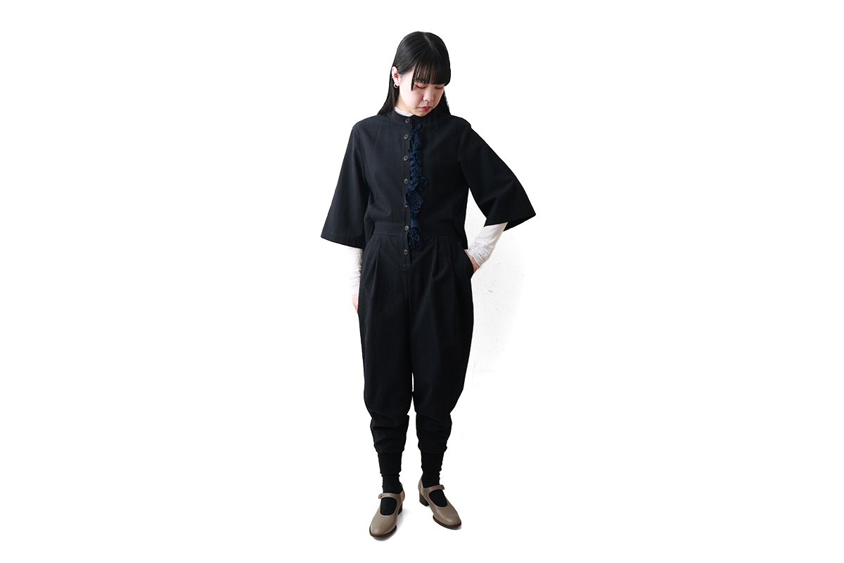 | フロントに“forest parade”のレースが添えられたウール100%のあたたかさを感じる生地感のコンビネゾン。ミニマムなデザインのコンビネゾンは、前身頃は繋がっていますが、後ろ身頃はウエスト部分で切り離されており、セットアップのようなシルエットでお召しいただけます。後ろ身頃はウエストにインしてもアウトしてもご着用していただけます。 |