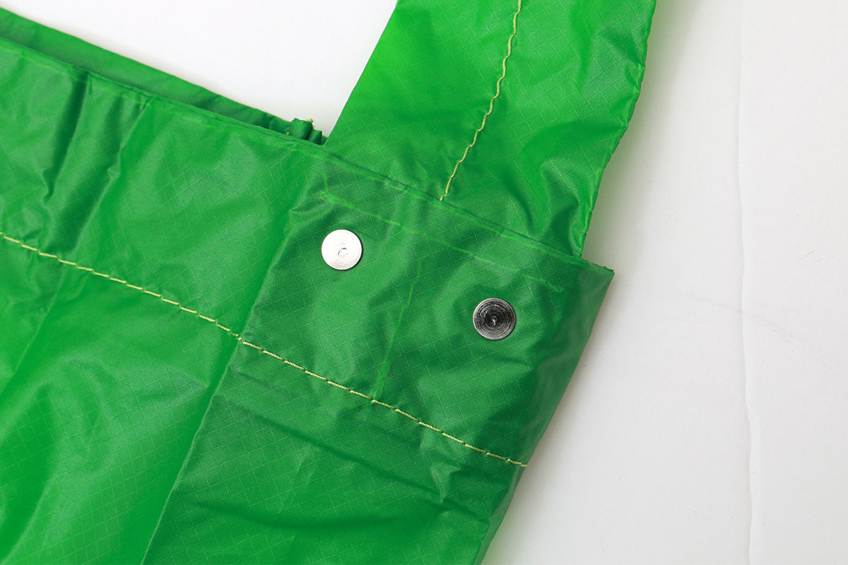 | 商品説明 | ポリエステル100%のペットボトルより作られる再生繊維のサブバッグです。高密度繊維に撥水加工を施しているので、防水、撥水性に優れています。大きめサイズでA4の冊子も十分に入る大きさです。eb.a.gosらしい遊び心のある籐のケースは普段はバッグに付けてチャームのようにも使えます。サイズがプリントされています。縦に2つに折って、3つに折ってクルクルすればカゴケースに入ります。 |