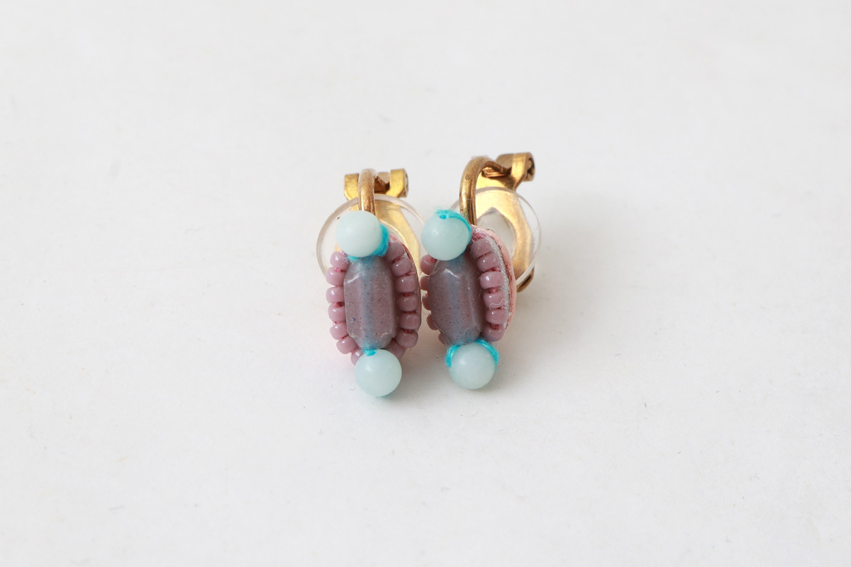 <Earrings> イヤリング金具:真鍮(フランス製) *金属アレルギーの方は 付属の樹脂カバーをご使用ください。