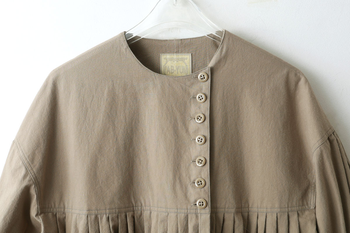 たっぷりと寄せられたギャザーにふんわりとした袖にたくさんあしらわれた袖口のボタン。