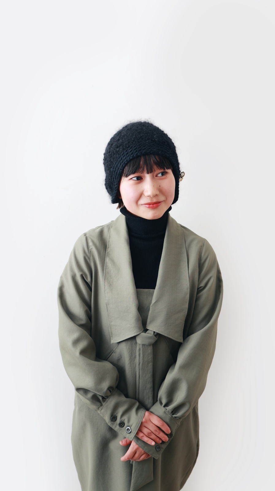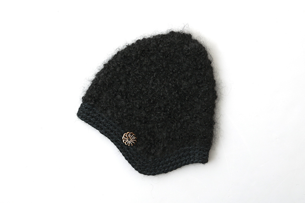 別注!! モヘアループ 耳当て付きニットクロッシェ (BK:花型ボタン) [hitomi shinoyama design]