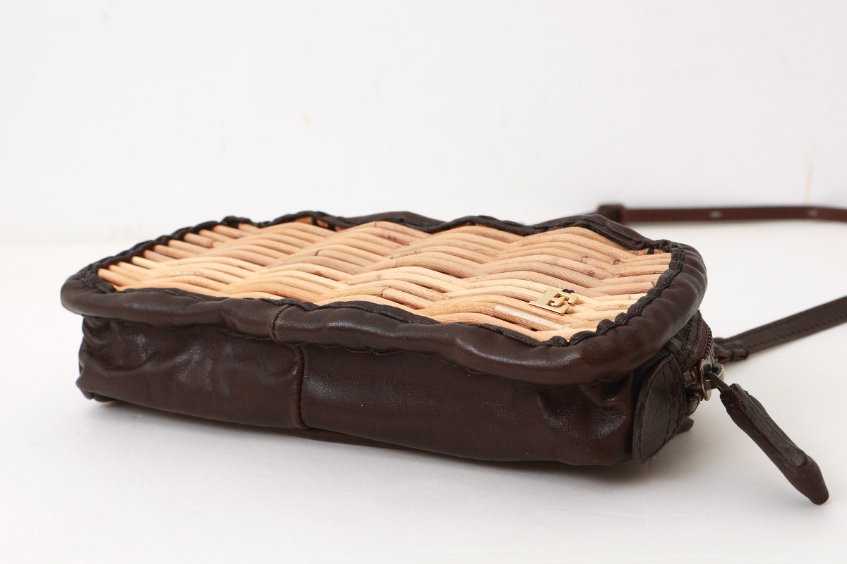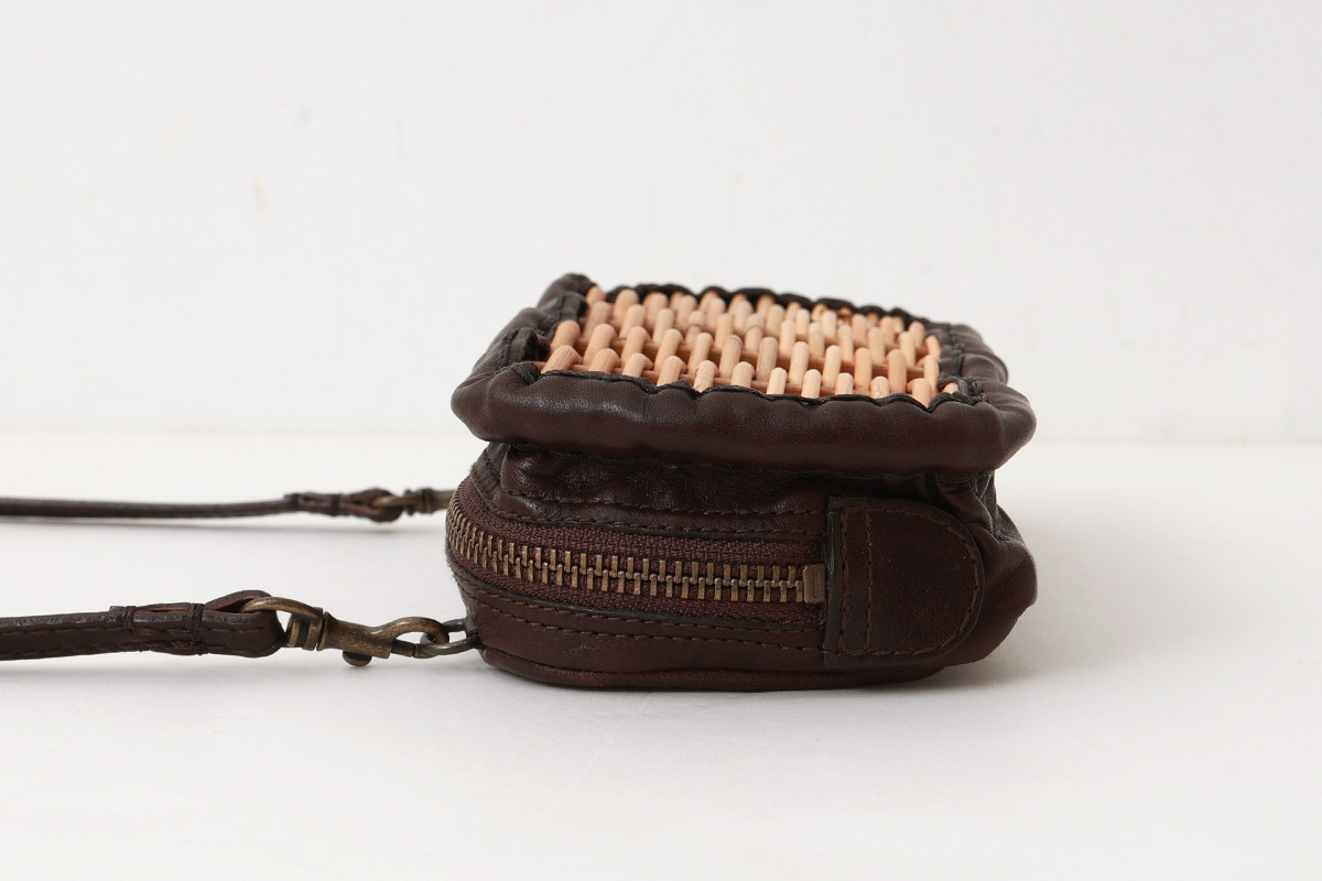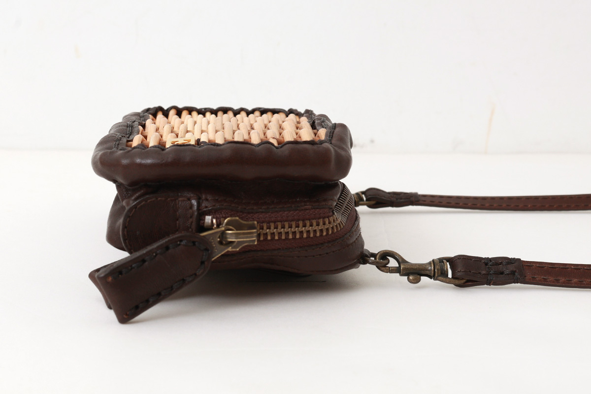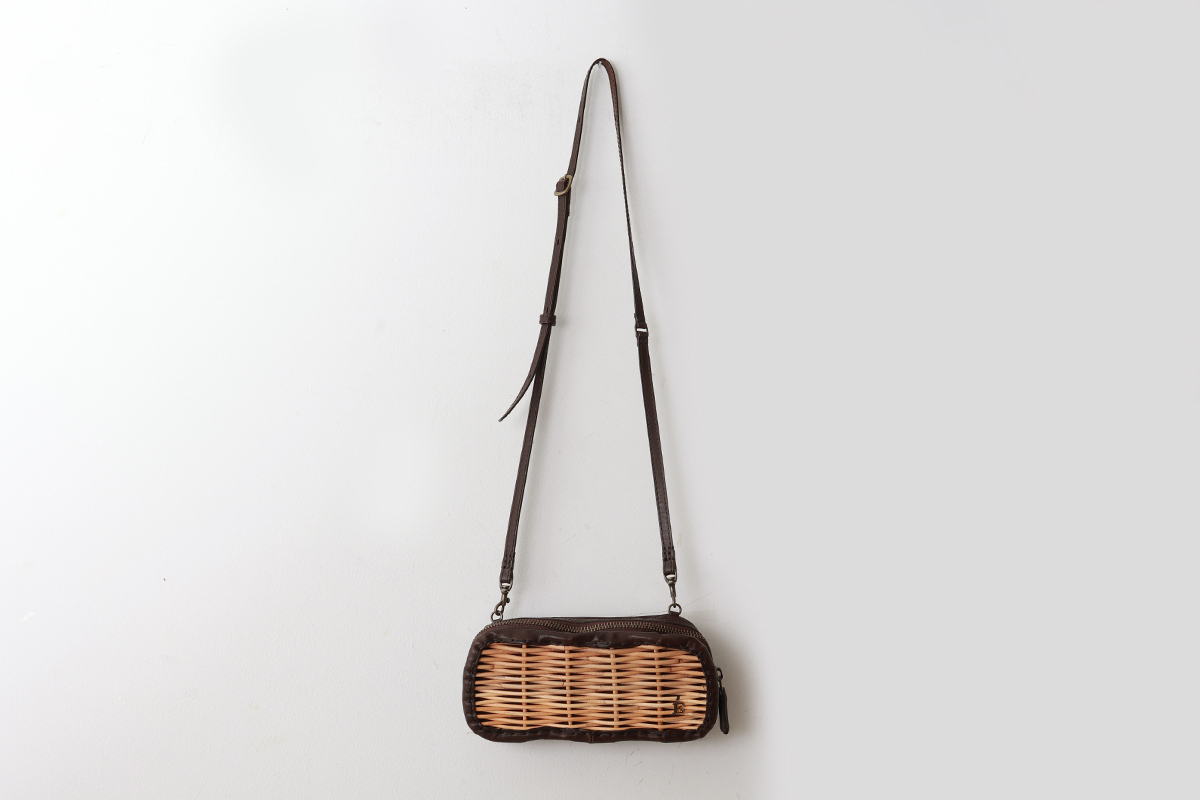紅籘と牛革ソフトの組み合わせの長財布。牛革ソフトは渋なめしの限界の厚さ0.8cmまで薄くしてタイコ染色をしソフトな仕上げのものにアイロンをかけ、自然な艶を出した素材。エバゴスといえば紅籘のかご。紅籘を使ったお財布は他にはありません。たっぷり収納できる長財布。新しくポシェットのように肩からかけることのできるショルダーベルつきで、取り外し、長さ調節可能です。