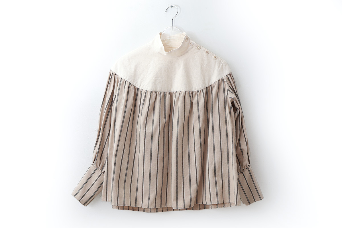 たっぷりとした袖のボリュームとカフスのコントラストも魅力的です。ゆったりとした身頃でラクな着心地。