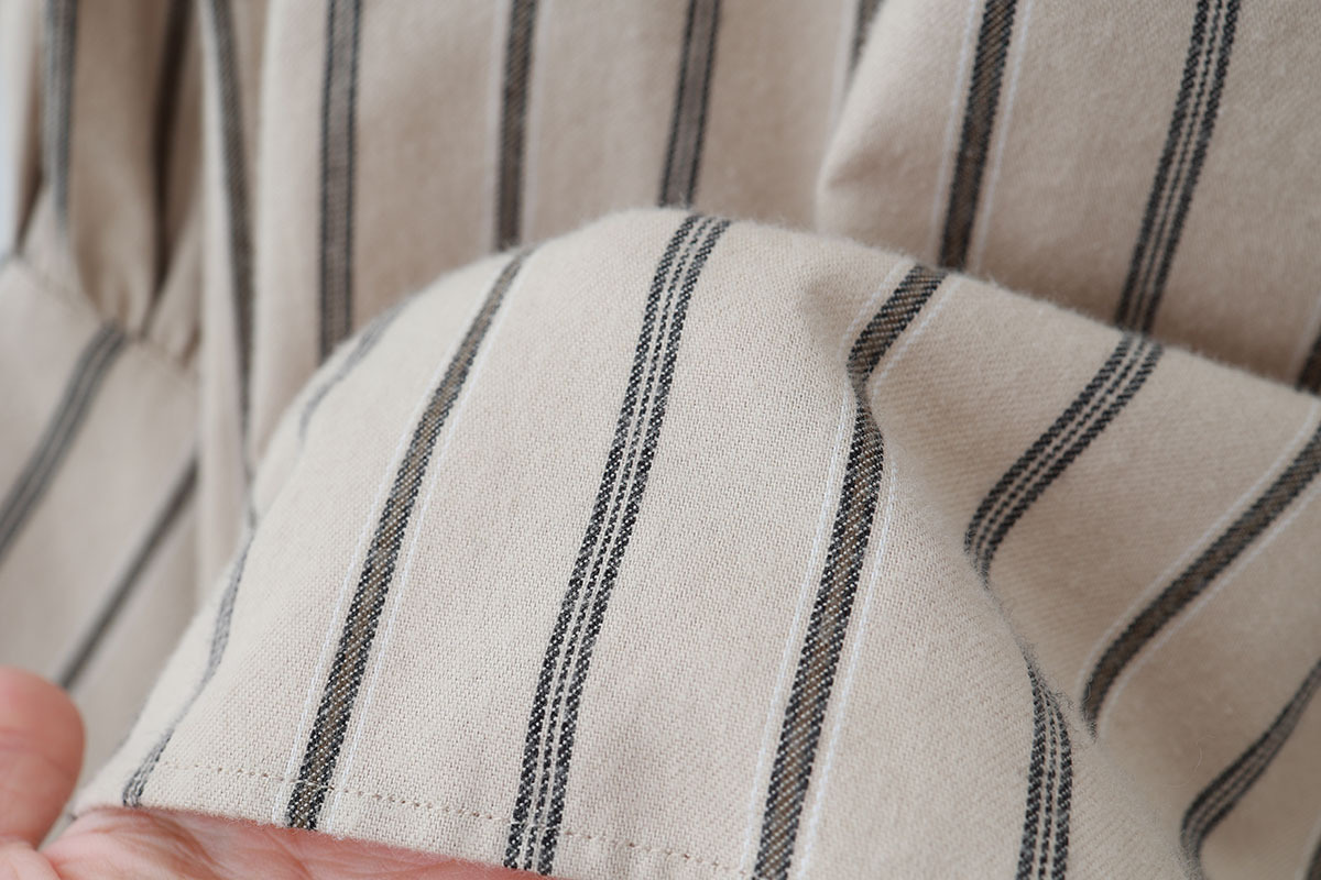 生地は柔らかな風合いの起毛したオーガニックコットンストライプです。