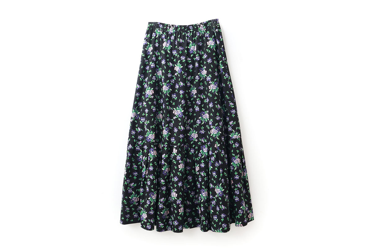 leur logetteアーカーイブのフラワープリント生地でショップ別注のスカートをお作り頂きました。シンプルに一枚で着るだけで、華やかな雰囲気になります。ウエストはゴム仕様。オールシーズンお召し頂けます。