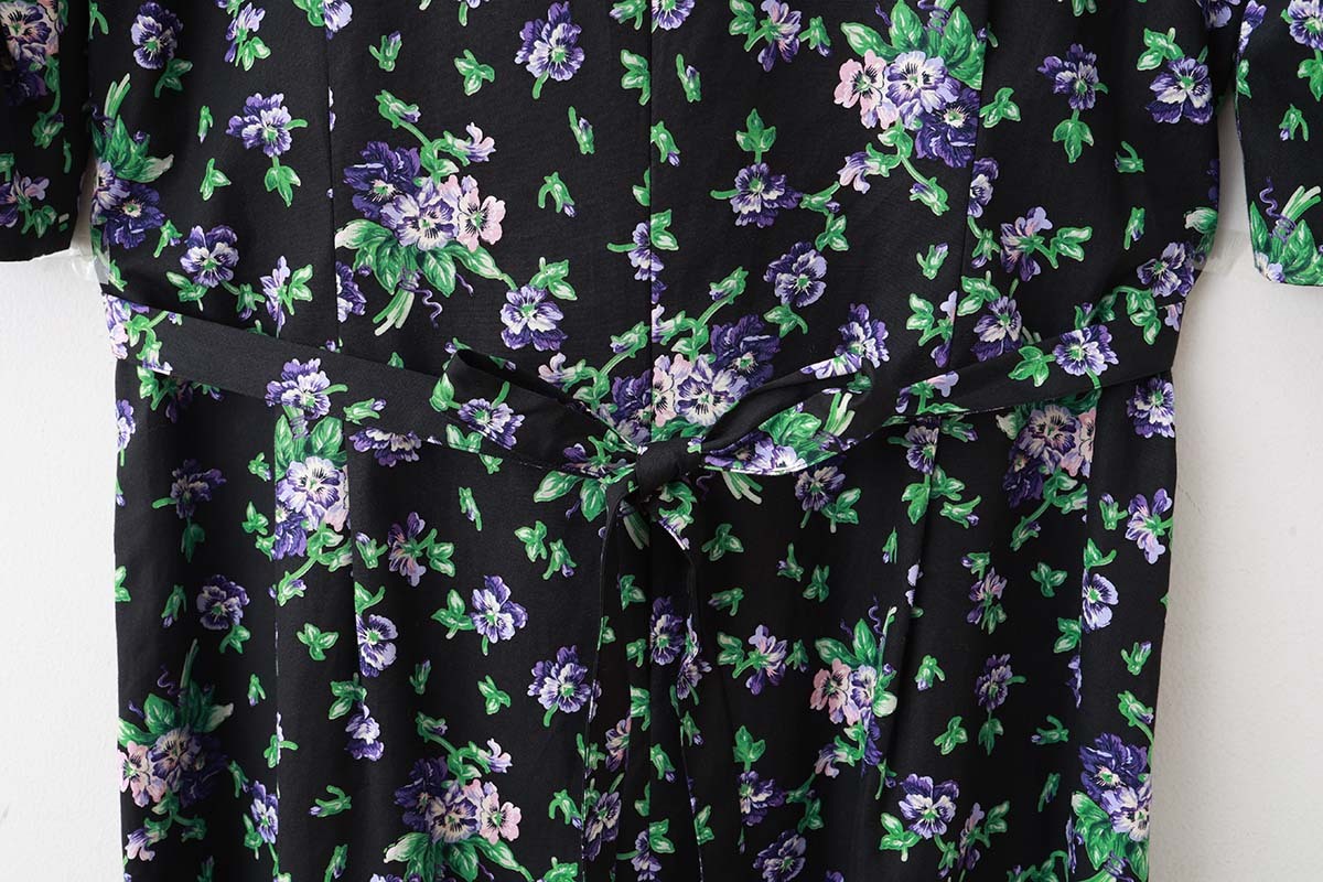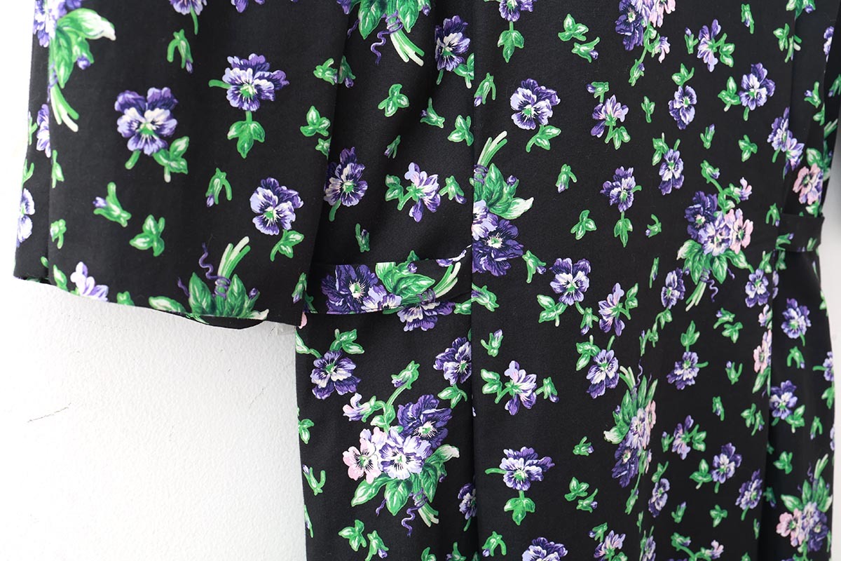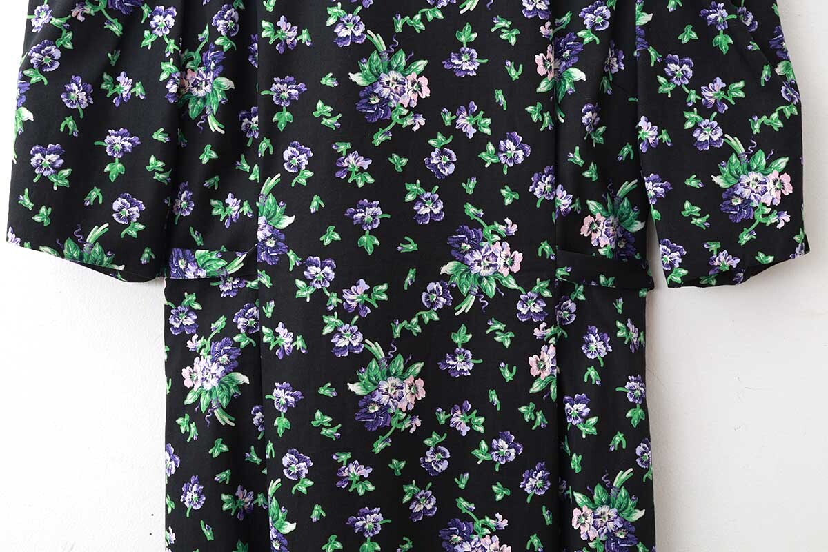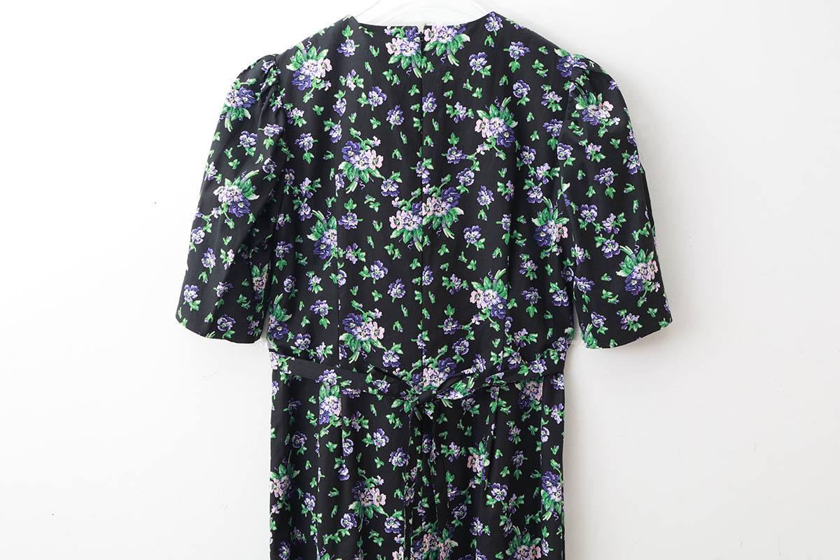 leur logetteアーカーイブのフラワープリント生地でショップ別注のワンピースをお作り頂きました。パフスリーブにIラインのシルエットで、体のラインが美しく見えます。シンプルに一枚で着るだけで、華やかな雰囲気になります。