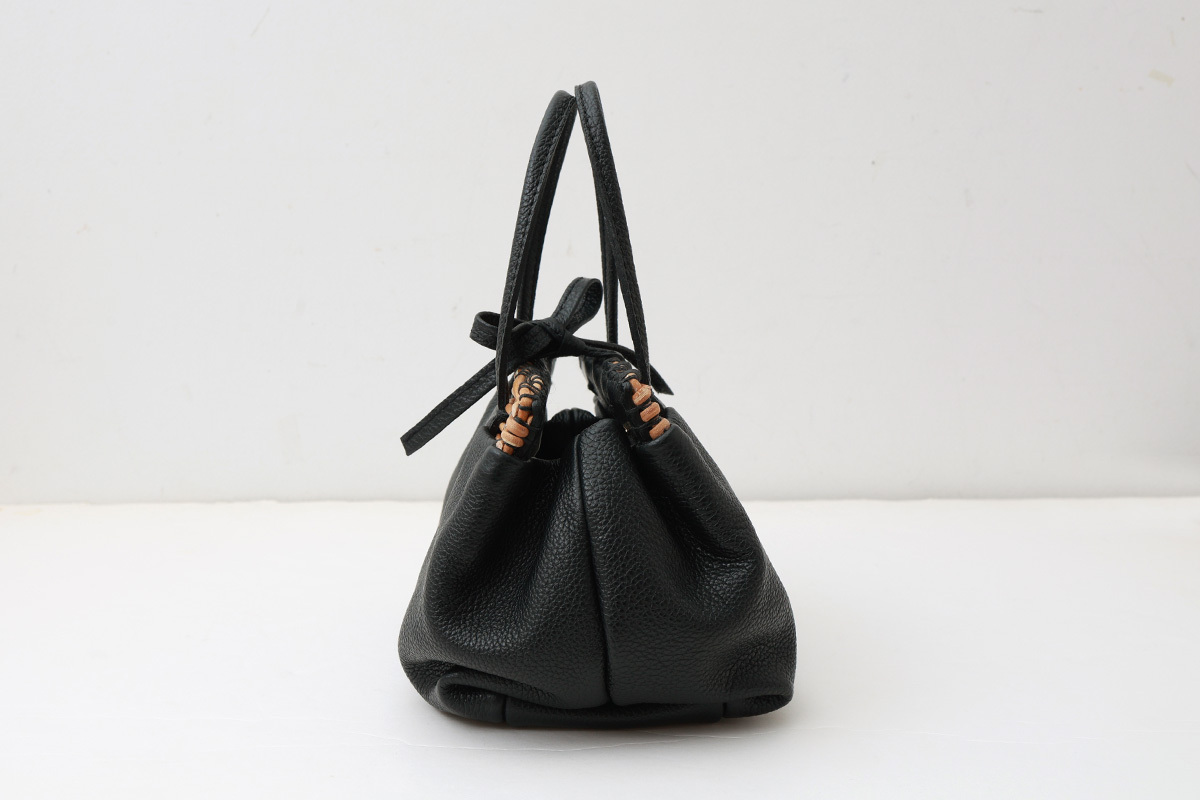 | 商品説明 | 紅籘と厚みとコシがありながらもフニャフニャした感触が特徴のシュリンク・エンボスレザーを組み合わせたかごバッグです傷が付きにくく、柔らかく色落ちがない使いやすい革です。昔、おばあちゃんが持っていた柔らかな口金バッグをイメージ。鏡が収まるポケットがハンドステッチにより付けられ、よりクラシックな雰囲気に。小ぶりですがマチが大きく収納力も抜群です。 |
