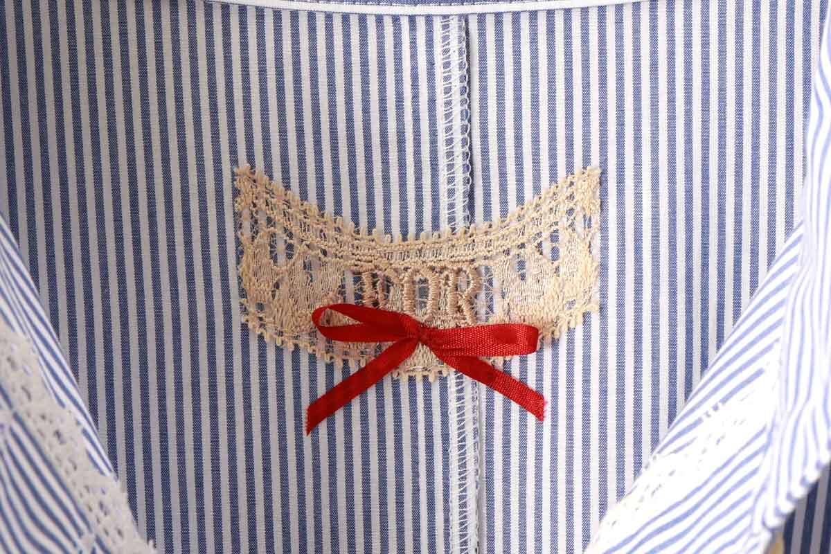 ポケットの内側や裾の内側にあしらわれたレースや、SサイズとMサイズで色が違うブランドタグのリボンなど、こだわりがたっぷり詰まった特別なワンピースです。色違い、柄違いもございます。