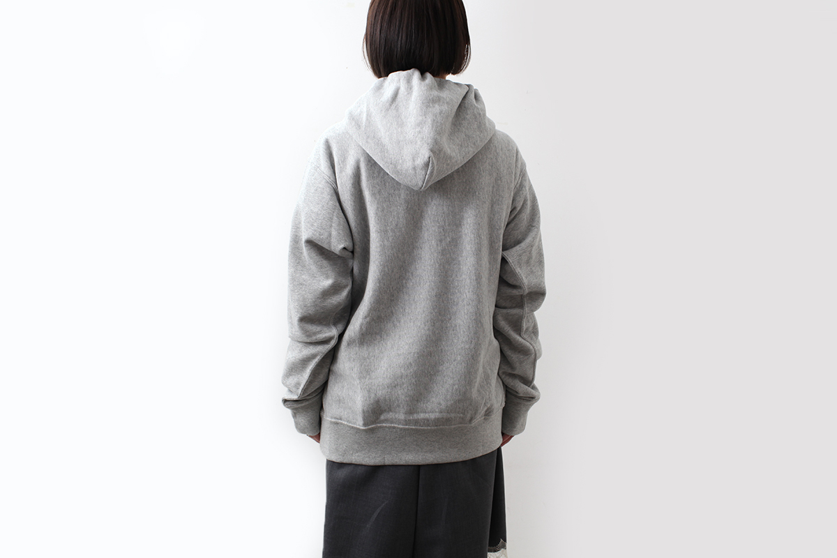 本来は縦方向に使われる生地を横方向に使用する「REVERSE WEAVE®」製法によって縦の生地の縮みを防ぐと同時に、両脇に「EXPANSION GUSSET(エクスパンションガゼット)」を付けることで横の縮みへの影響を少なくし、動きやすさに配慮しています。身幅、肩幅にゆとりを持たせたリラックスフィット。