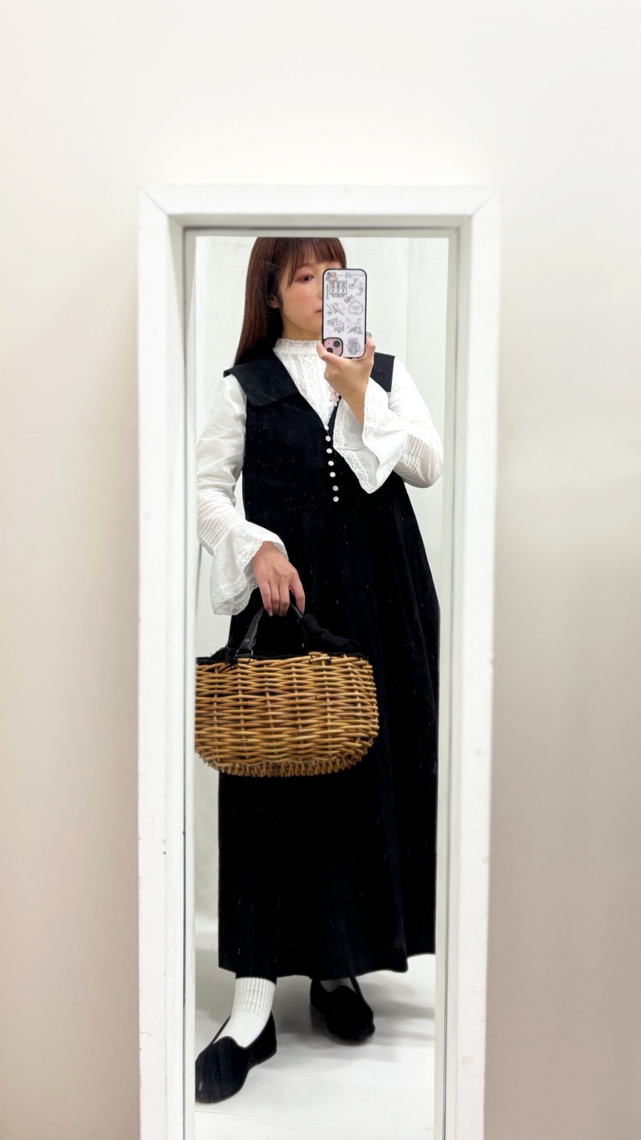 ガーリーな印象なので、スウェットやカーゴパンツ、スニーカーなど、カジュアルミックスなスタイリングもおすすめです。