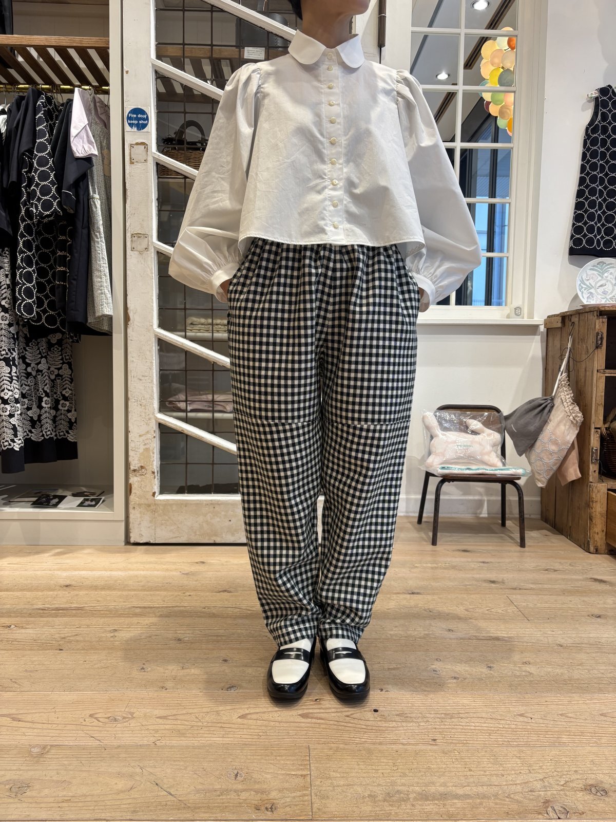 ウールギンガムギャザーPT (252-3399:OF×DGR) [homspun]