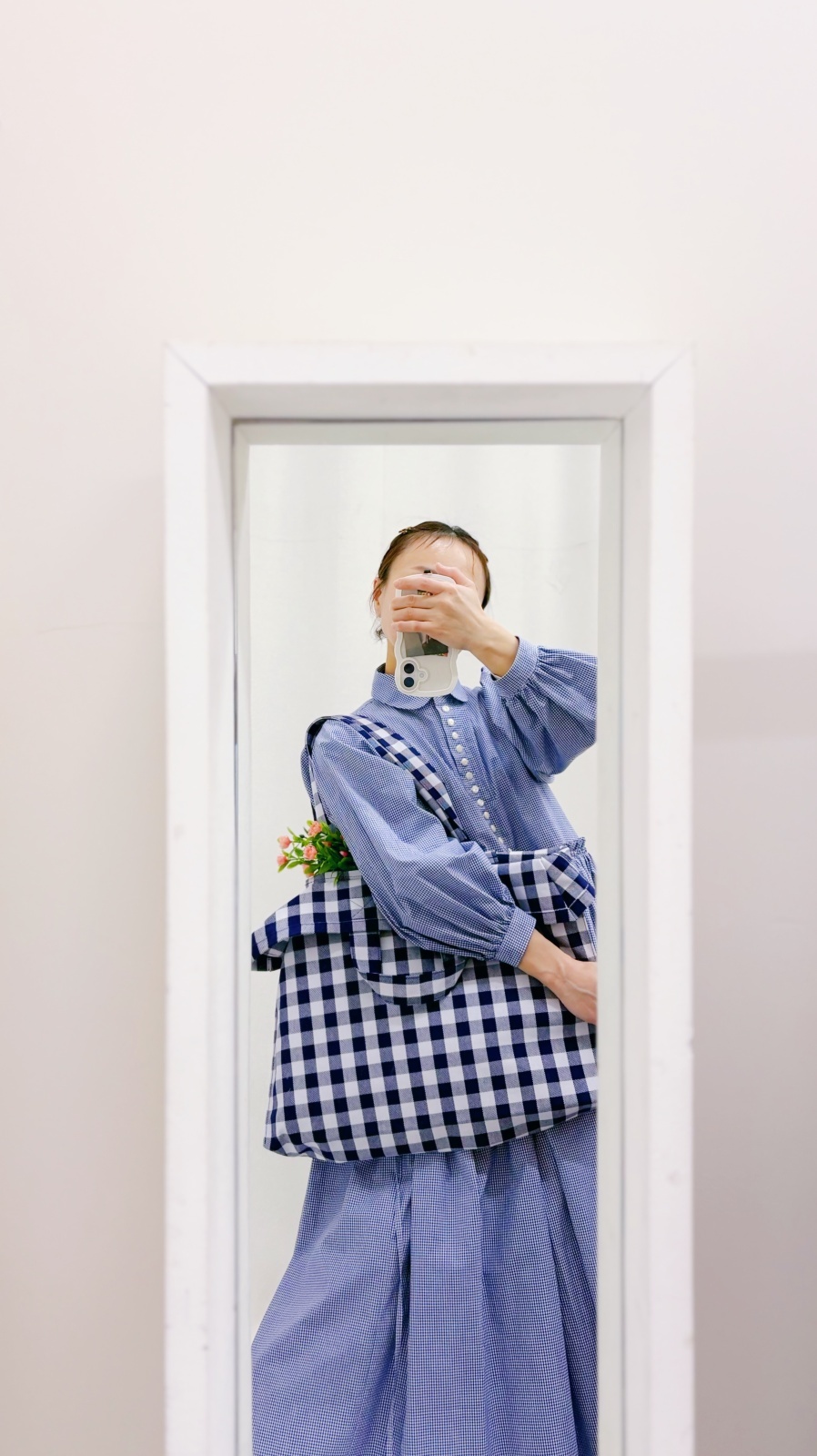 長い持ち手で肩掛けする時はくるっと外に折り曲げて持っても◎