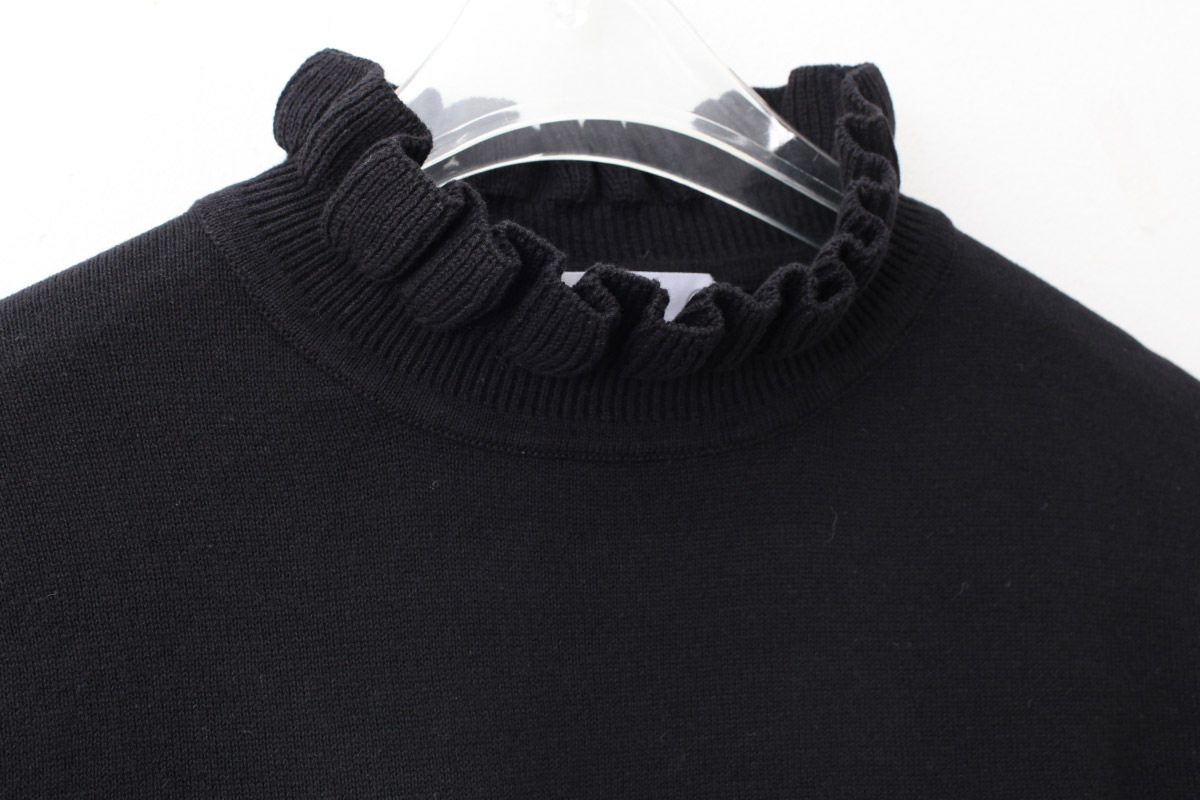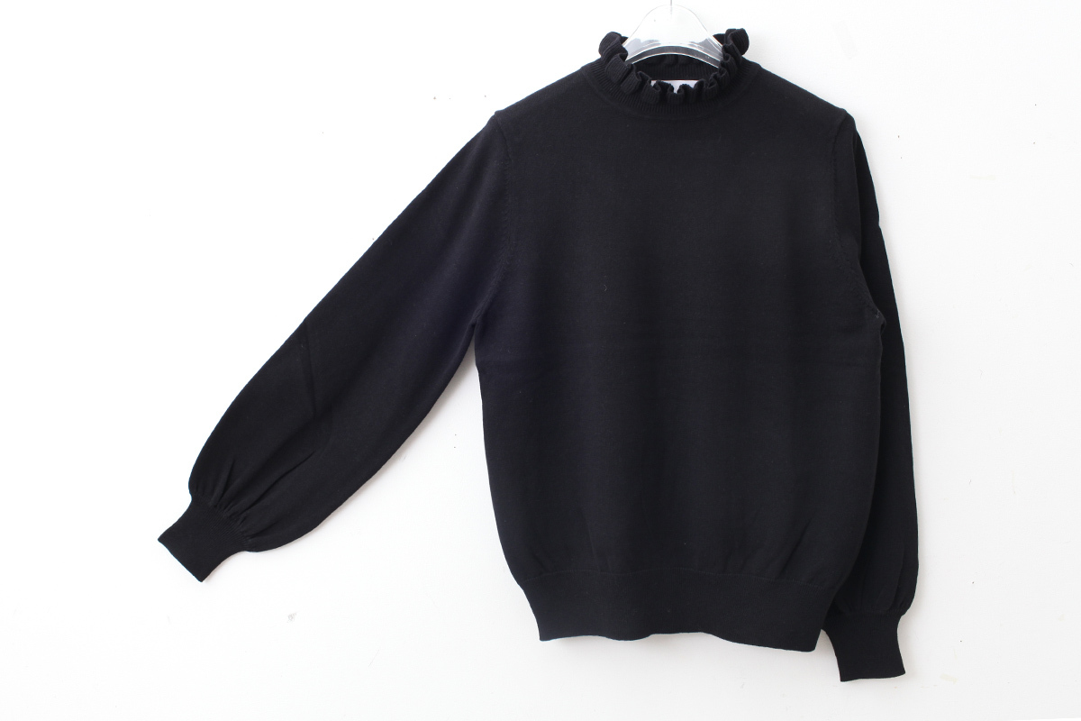 shop別注!! 32/2強撚綿フリル衿長袖プルオーバー (BK) [CHILD WOMAN]