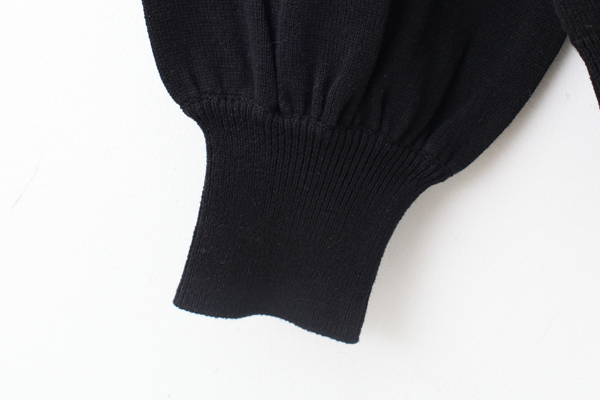 首元のフリルと袖口のポワンとしたパフがポイント。