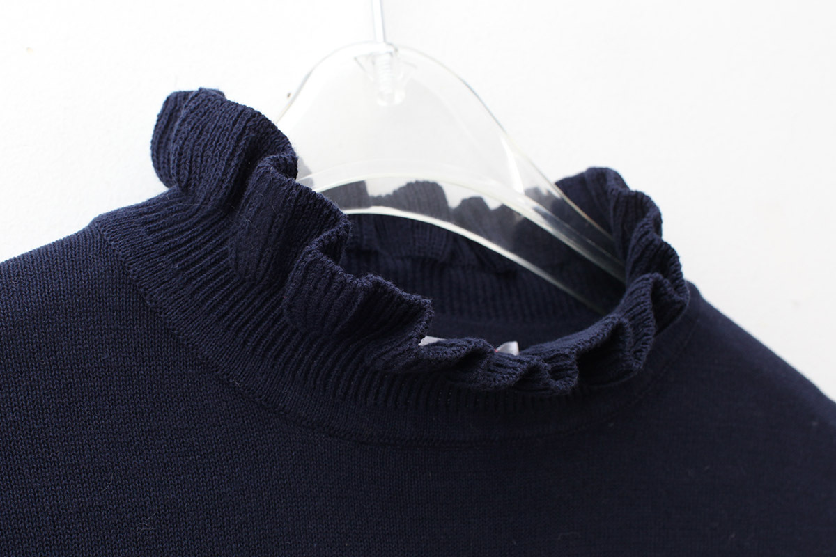 shop別注!! 32/2強撚綿フリル衿長袖プルオーバー (NV) [CHILD WOMAN]