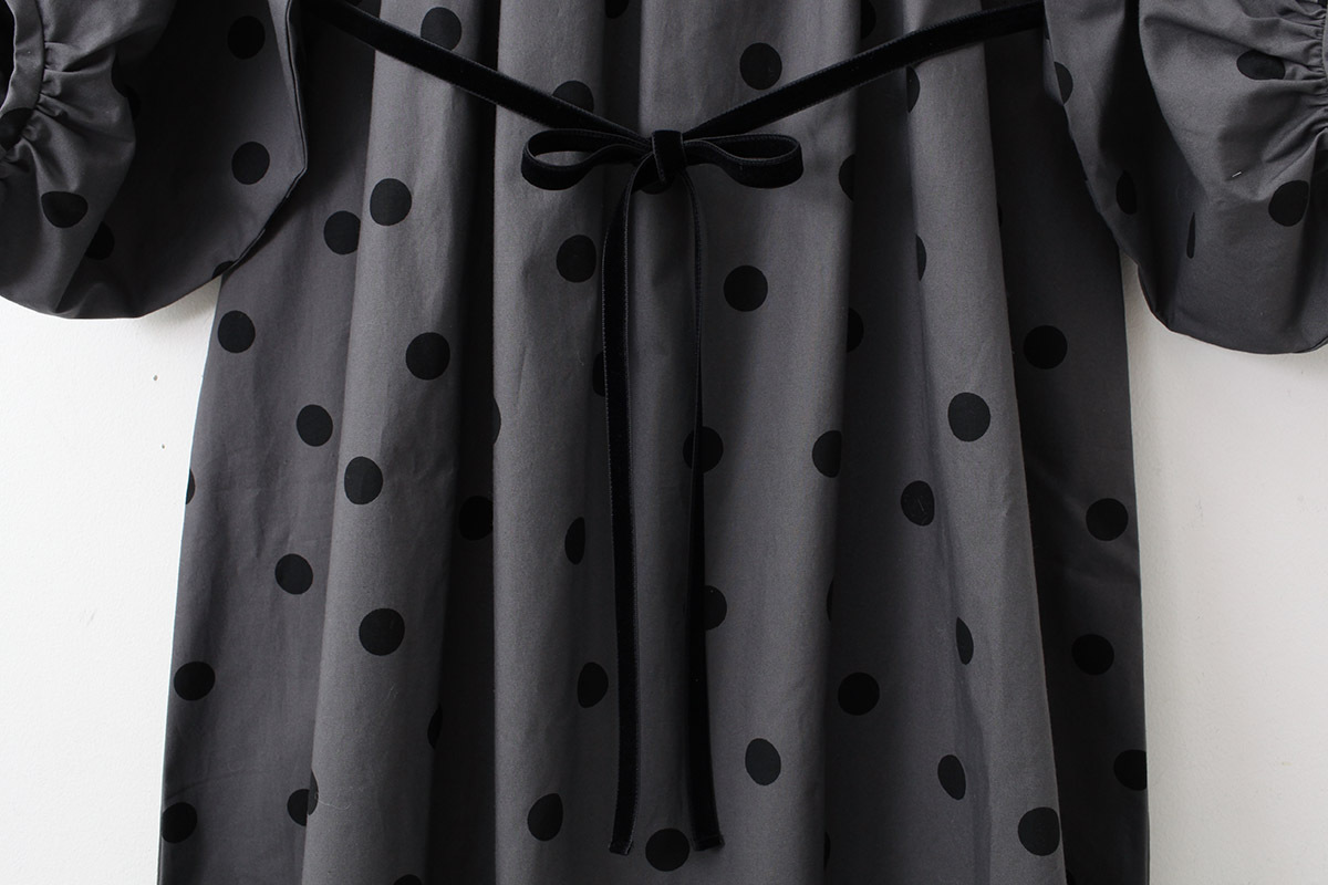 別添えのベルベットリボンでウエストマークをしてメリハリを効かせて。