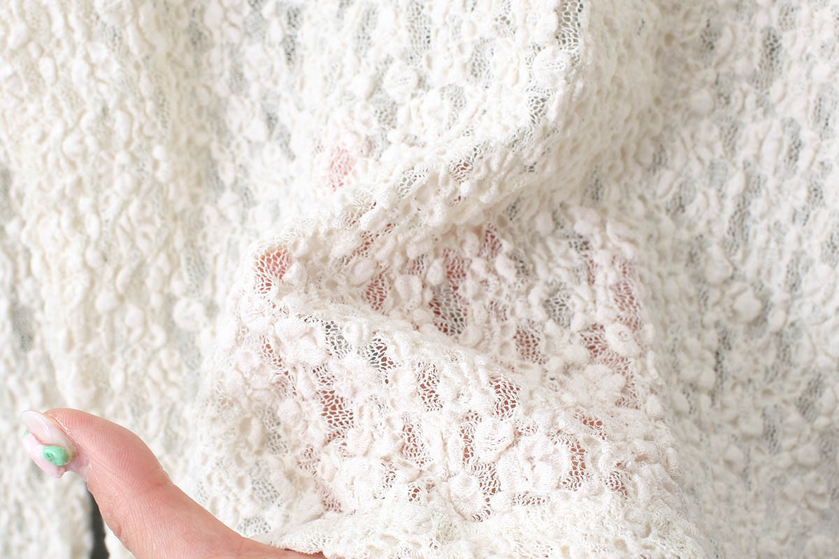 | ※ | この製品は、大変デリケートな素材を使用しておりますので、性質上、破損しやすく、糸引きやひきつれが起こりやすいので着用、着脱時、アクセサリー等には十分御注意下さい。着用の際はベルトやバック、周囲の壁など、表面の粗いものとの摩擦による引っかかりにもご注意下さい。 |