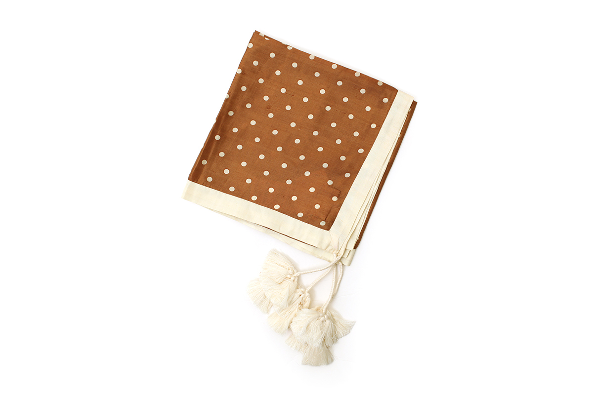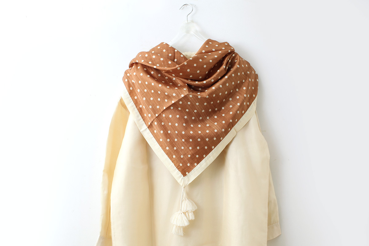 Khadi Silk Polka dots Print Tassel Scarf (BR) [BUNON]