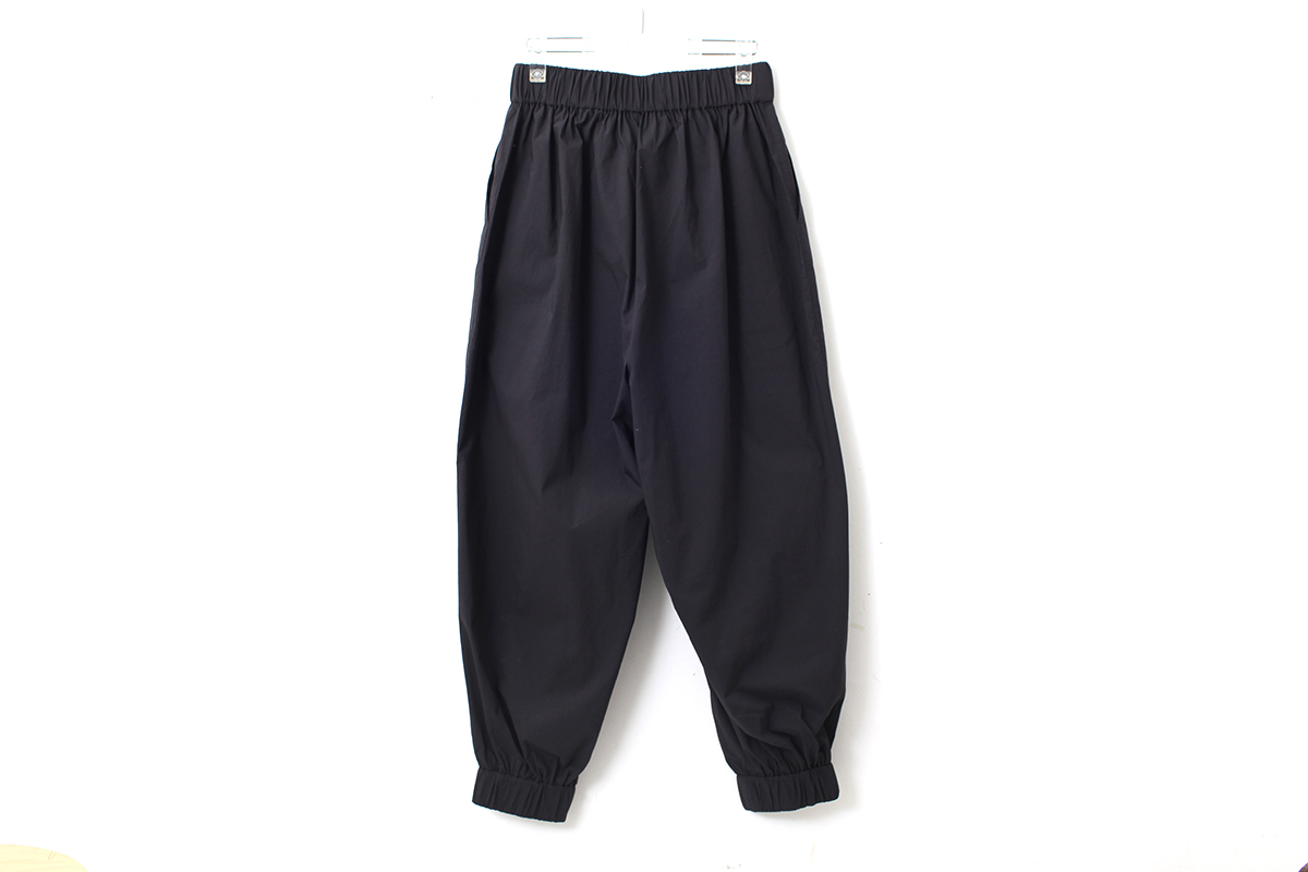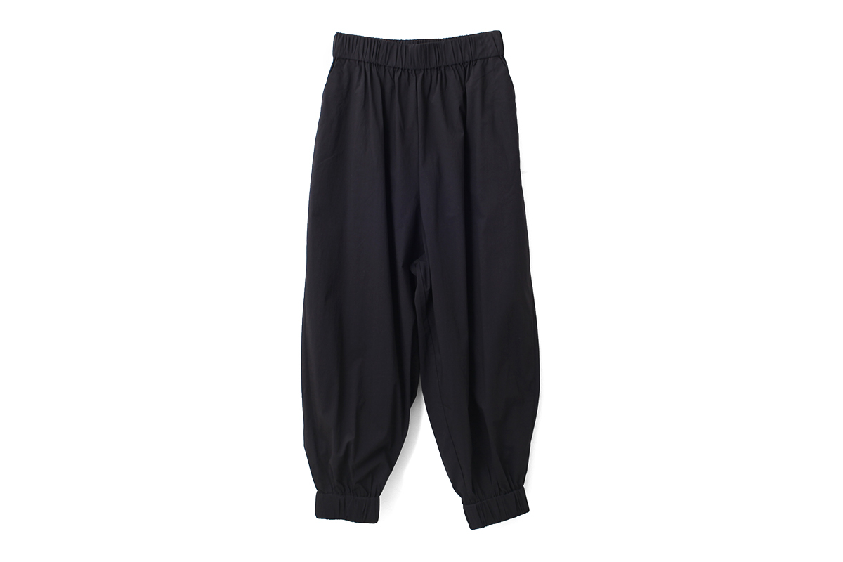きゅっと締まった裾が特徴的なパンツ。ストレッチが効いているので、動きやすく着心地の良い一着です。そのままブラウスやTシャツと合わせていただくのはもちろん、ワンピースの下に重ねたり、同じシリーズのブラウスやエプロンとコーディネートするのもおすすめ。さまざまな着こなしでお楽しみ頂けるアイテムです。