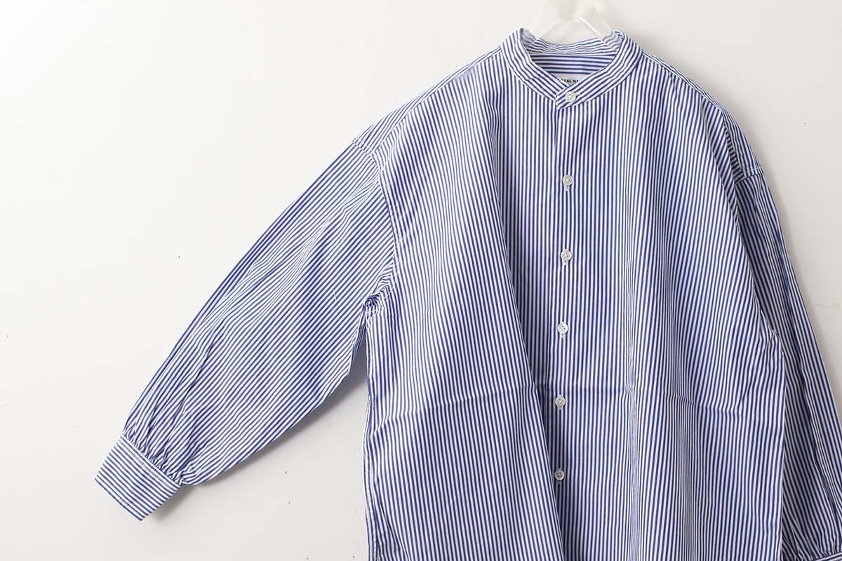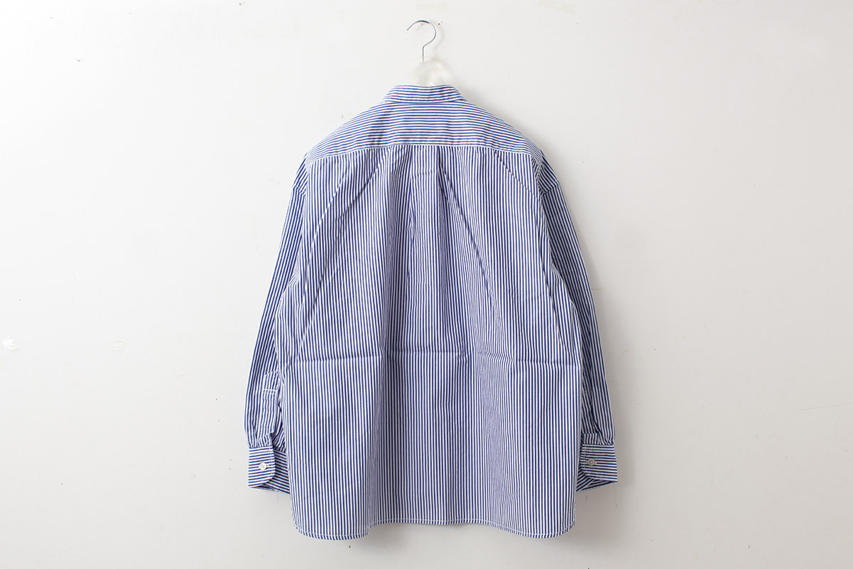 別注!! BANDCOLLAR SHIRT LONDON STRIPE (DBL) [ROYAL NAVY]