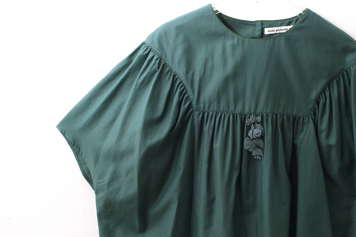 light wind ヨークギャザーブラウス (AES1428:GR) [mina perhonen]