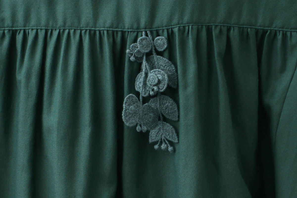 | 商品説明 | 経糸にシルク、緯糸には細番手のコットンを織り込んだ、しなやかで繊細な風合いのジョーゼット生地“light wind(ライト ウィンド)”。ゆったりと身体を包み込むようなシルエットのブラウス。服の中を風がふわりと吹き抜けていくような、軽やかで爽やかな一着。フロントには、“forest parade(フォレスト パレード)”のレースをアクセントに添えています。 |