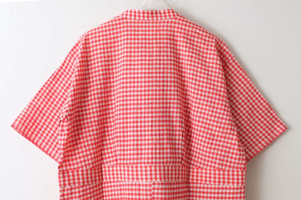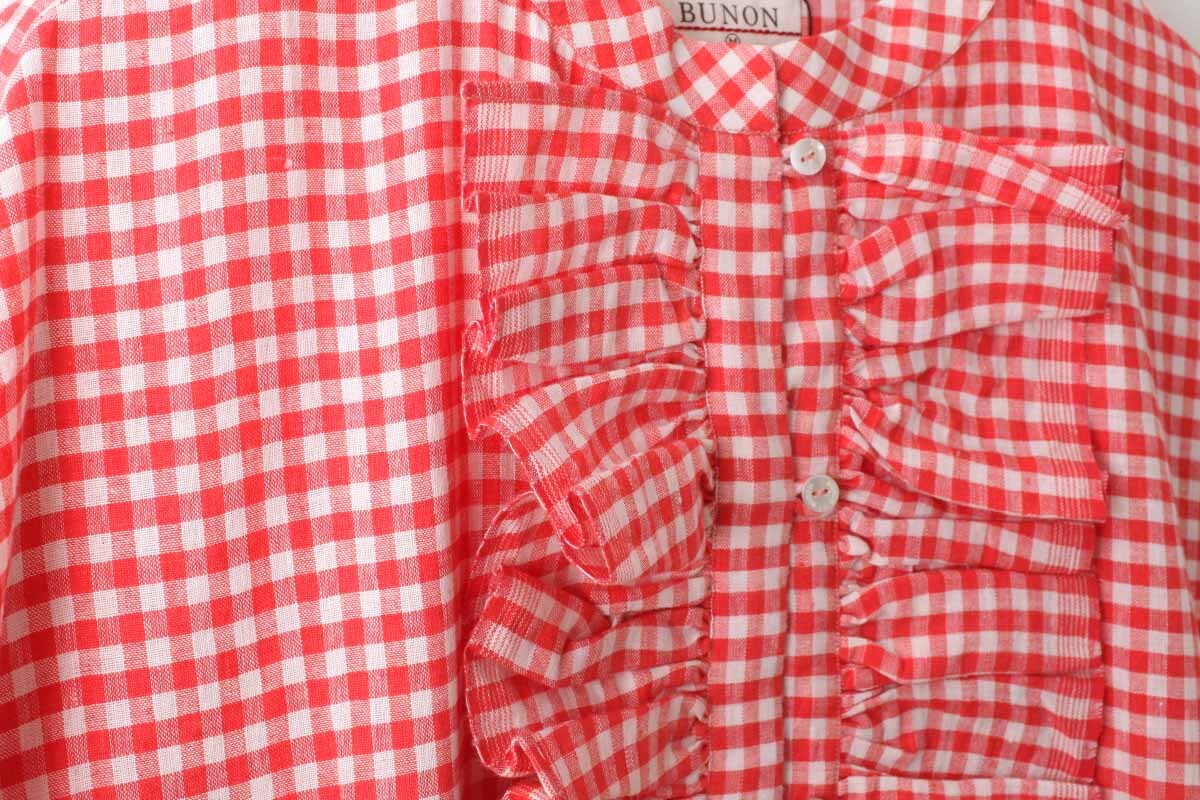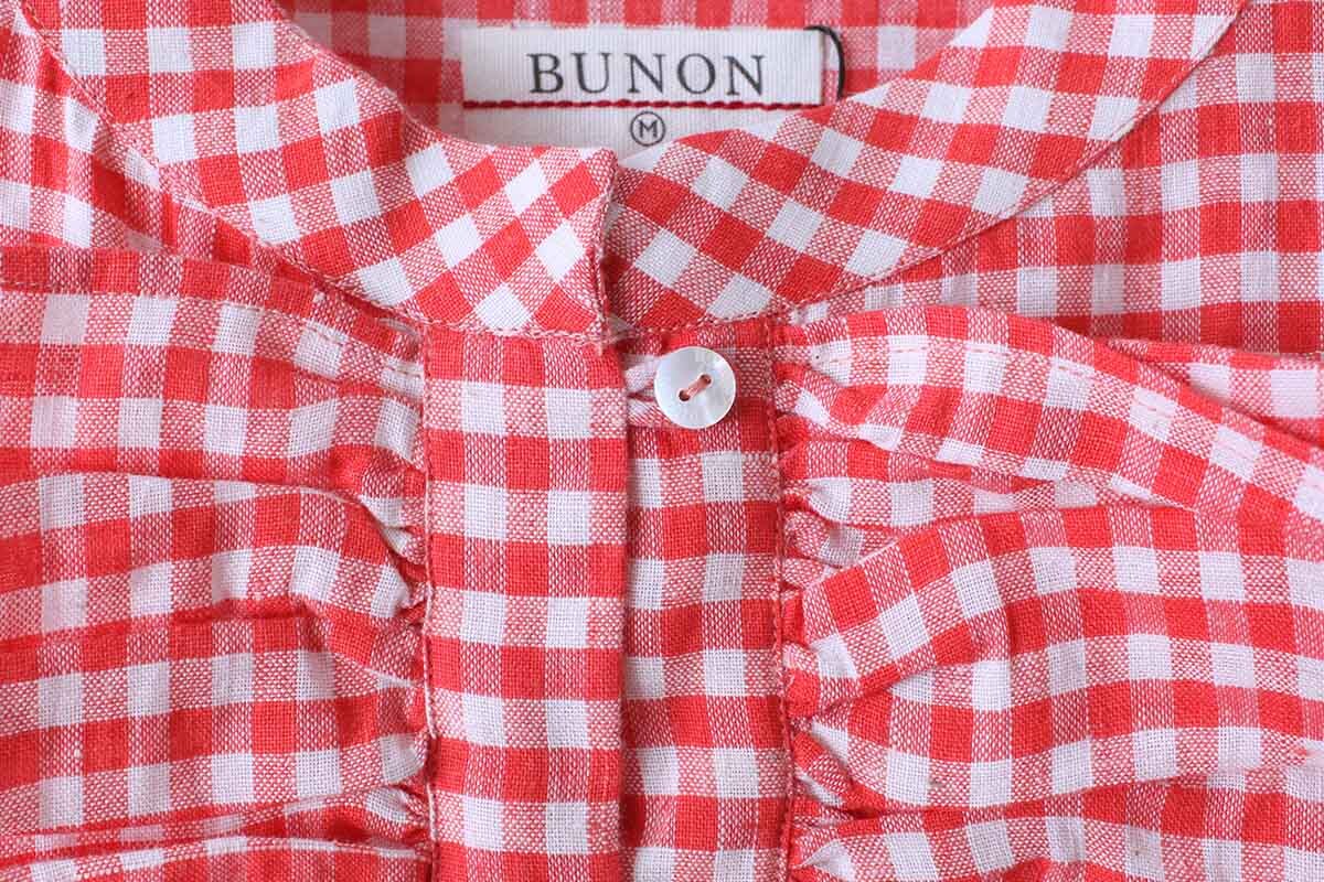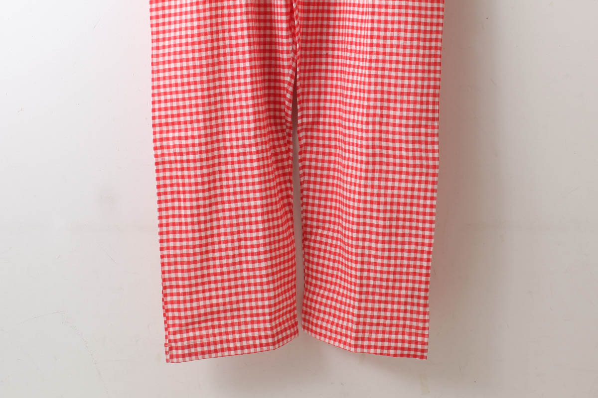 Khadi Linen Cotton Gingham Check Gingham Frill Overalls (RD) [BUNON]