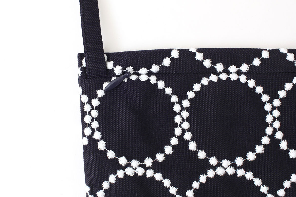 | 素材 | 表生地/綿100% 刺繍部分/上糸 綿100% 下糸 ポリエステル100% 裏生地/ポリエステル100% |