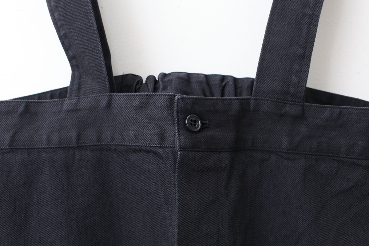 フィッシャーマンパンツから着想を得てデイリーウェアに落とし込んだYARMOのベストセラーアイテム。10ozデニム生地で登場。ストラップで3段階に長さ調整可能。後ろ中心ゴムを採用。ブラウスやカットソーとレイヤードを楽しんでお召しいただけます。