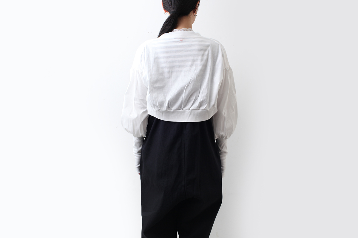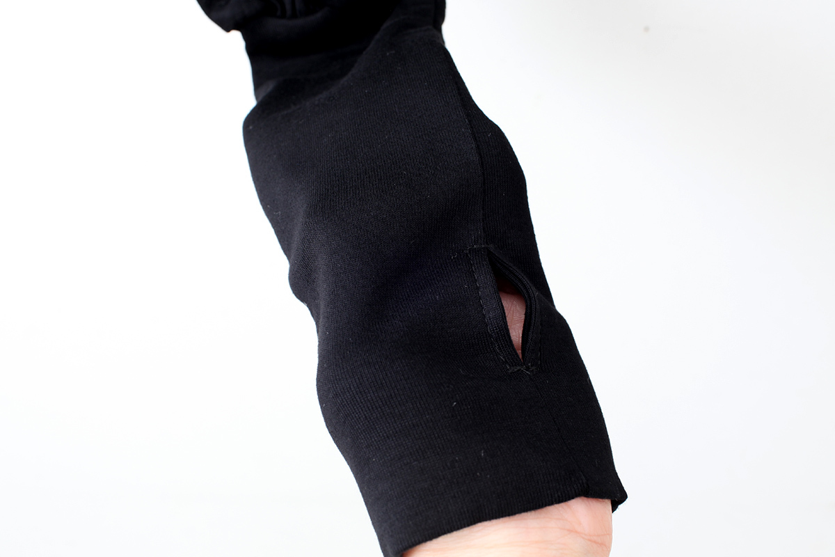 袖口のリブが長くサムホール付きの遊び心あるデザインです。