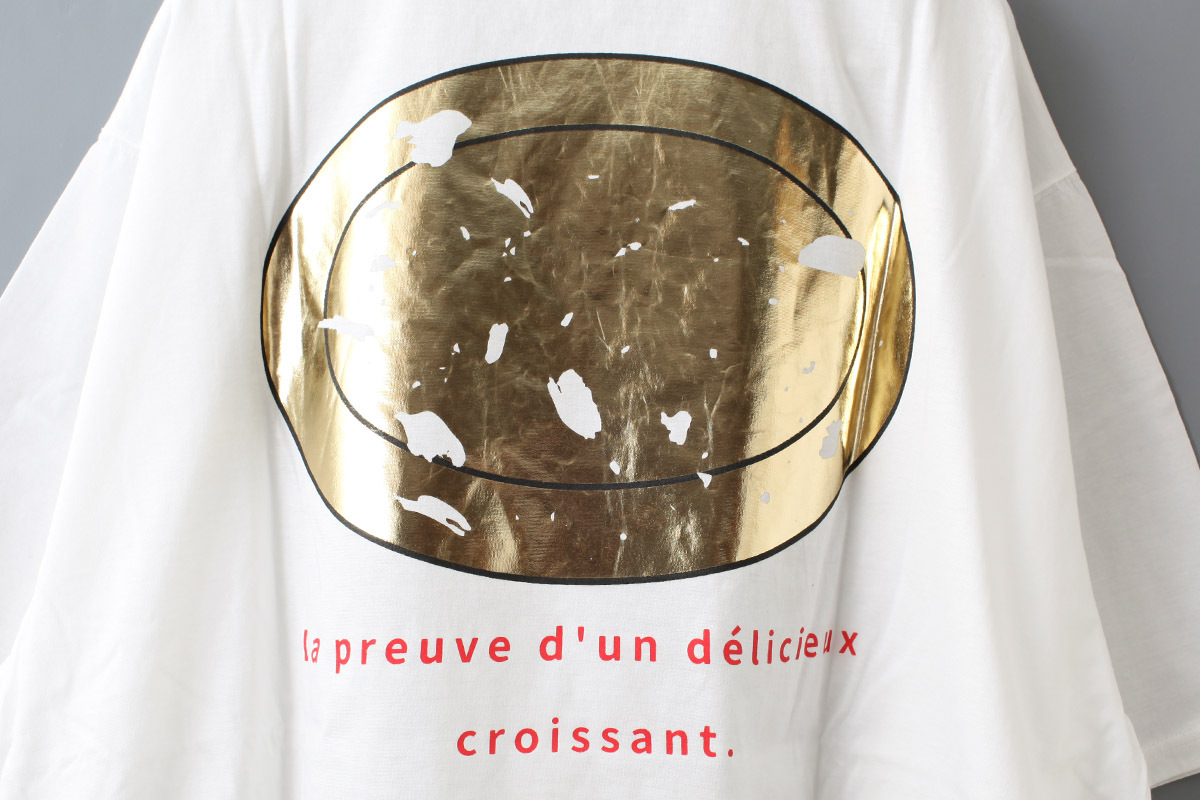 | 商品説明 | 綿100%のピュアオーガニックコットンで作られたビッグTシャツです。柔らかくしっとりした上質な触り心地。テーマにちなんだクロワッサンを食べた時に出るかけらがプリントされています。 "La preuve d'un delicieux croissant""おいしいクロワッサンの証拠" |