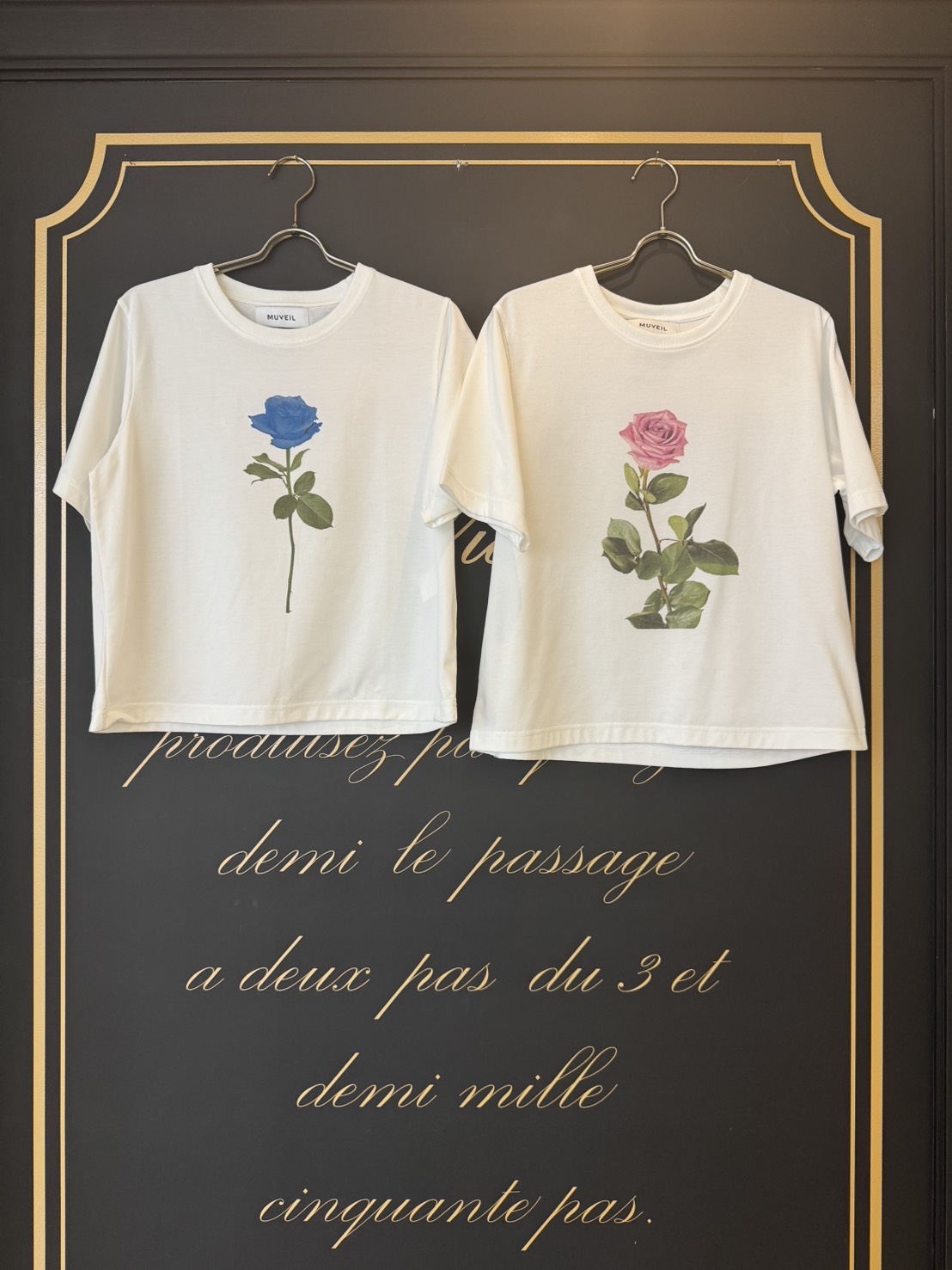 【SALE30%OFF!! ローズプリントTシャツ [MUVEIL] 】