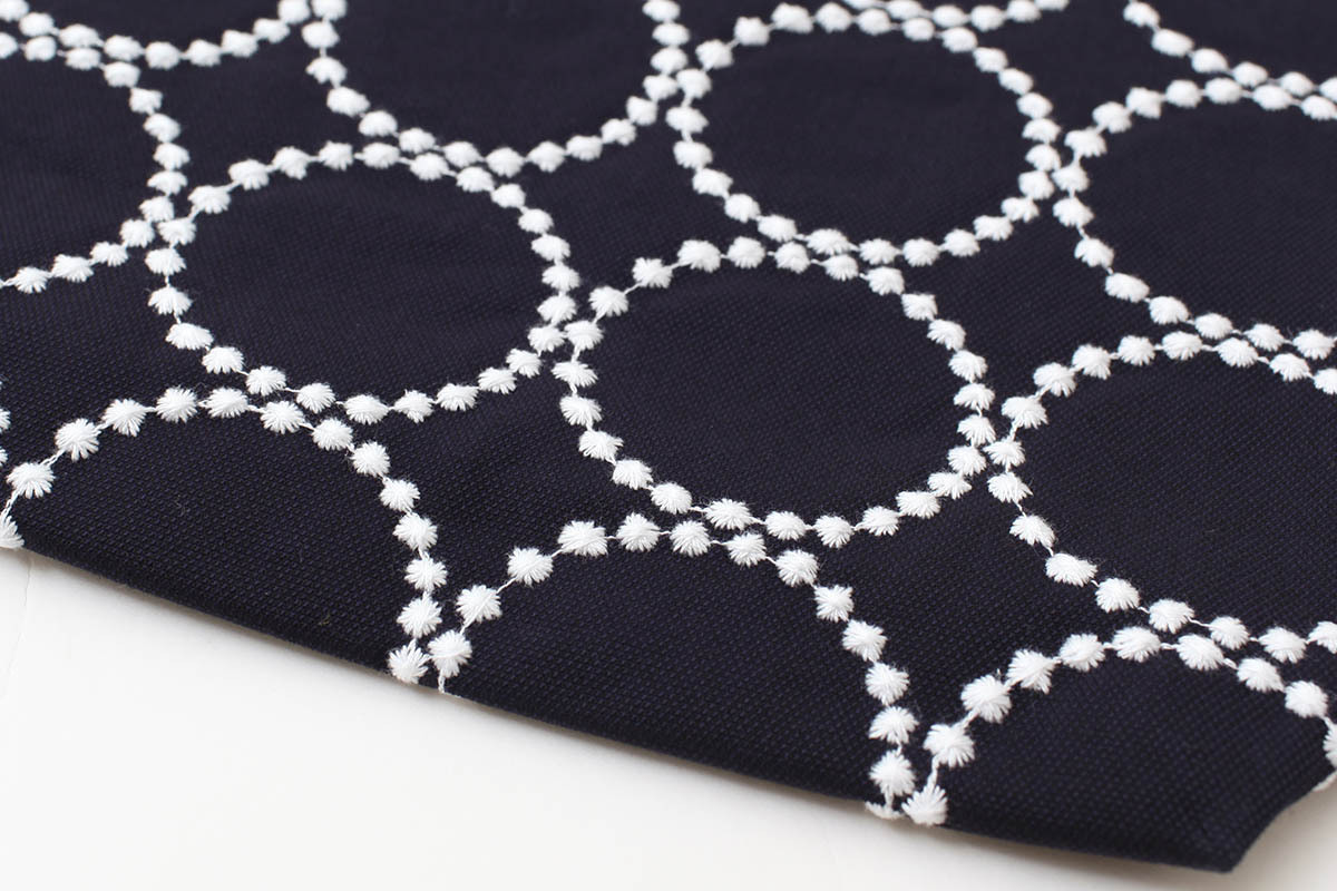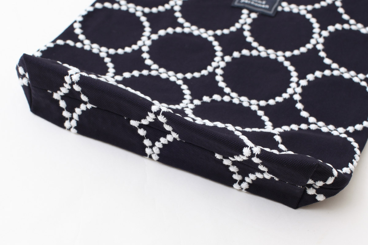 | 素材 | 表生地/綿100% 刺繍部分/上糸 綿100% 下糸 ポリエステル100% 裏生地/ポリエステル100% |
