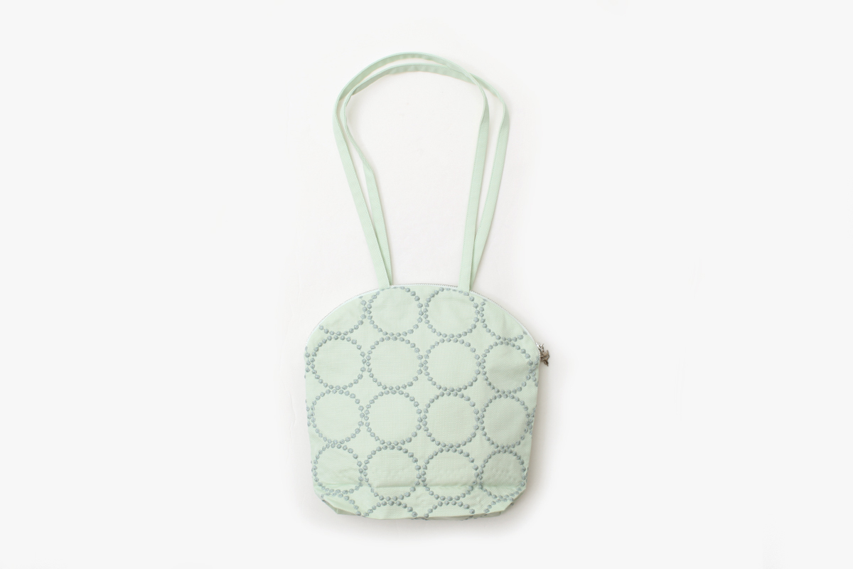 | 「toast bag」の類似型としてデザインされた「muffin bag」。底のサイズやデザインはそのままに、上部を丸いフォルムに仕上げています。肩に掛けられる持ち手と、開口部にはファスナーを付けました。コンパクトなバッグですが少し傾ければ500mlのペットボトルが入り、日々お使いいただきやすい容量ですミナ ペルホネンを代表するテキスタイルとなった“tambourine”。人の手の跡を消さないように表現した不揃いの粒は、不完全なものの美しさや、それぞれの個性をあらわしています。 |