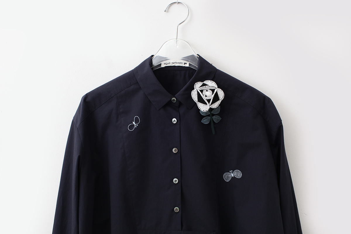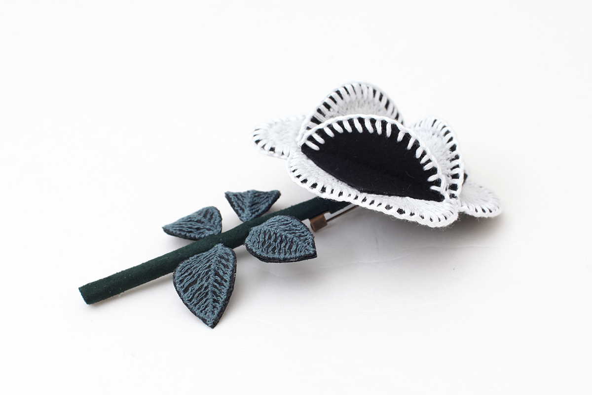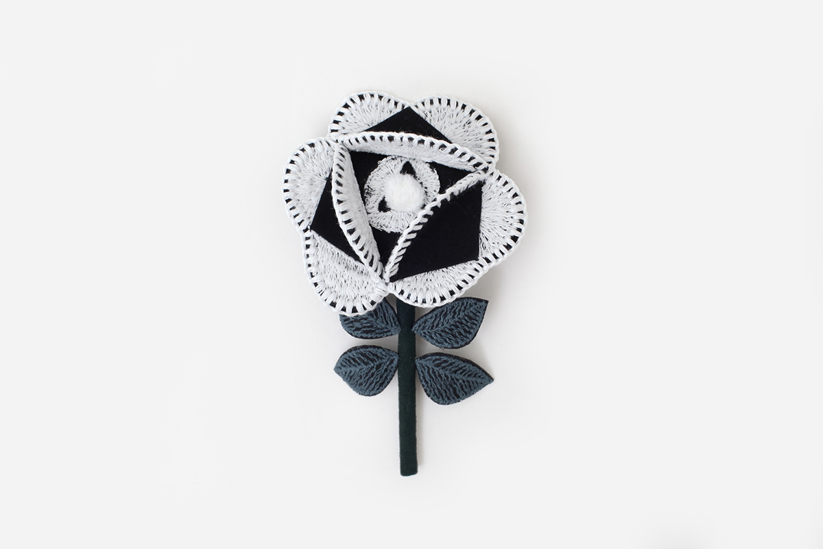 | 商品説明 | フィンランド語でバラを意味する“ruusu(ルース)”と名付けたテキスタイル。花びらが重なる様子を、図形を並べるようにミニマルなラインで描いたモチーフです。テキスタイルの刺繍表現を立体で組み立て、一輪のコサージュに仕立てました。やわらかく立ち上がる花びらの表情や、刺繍ならではの繊細な陰影が、静かな美しさを引き立てます。 |